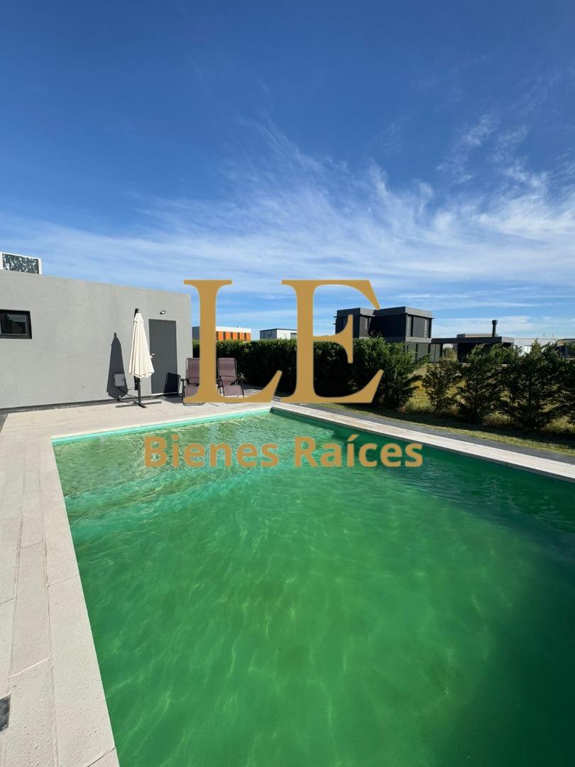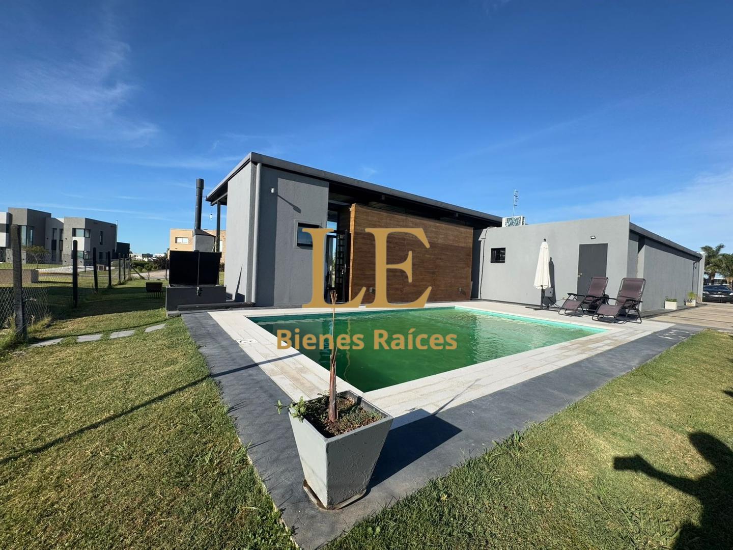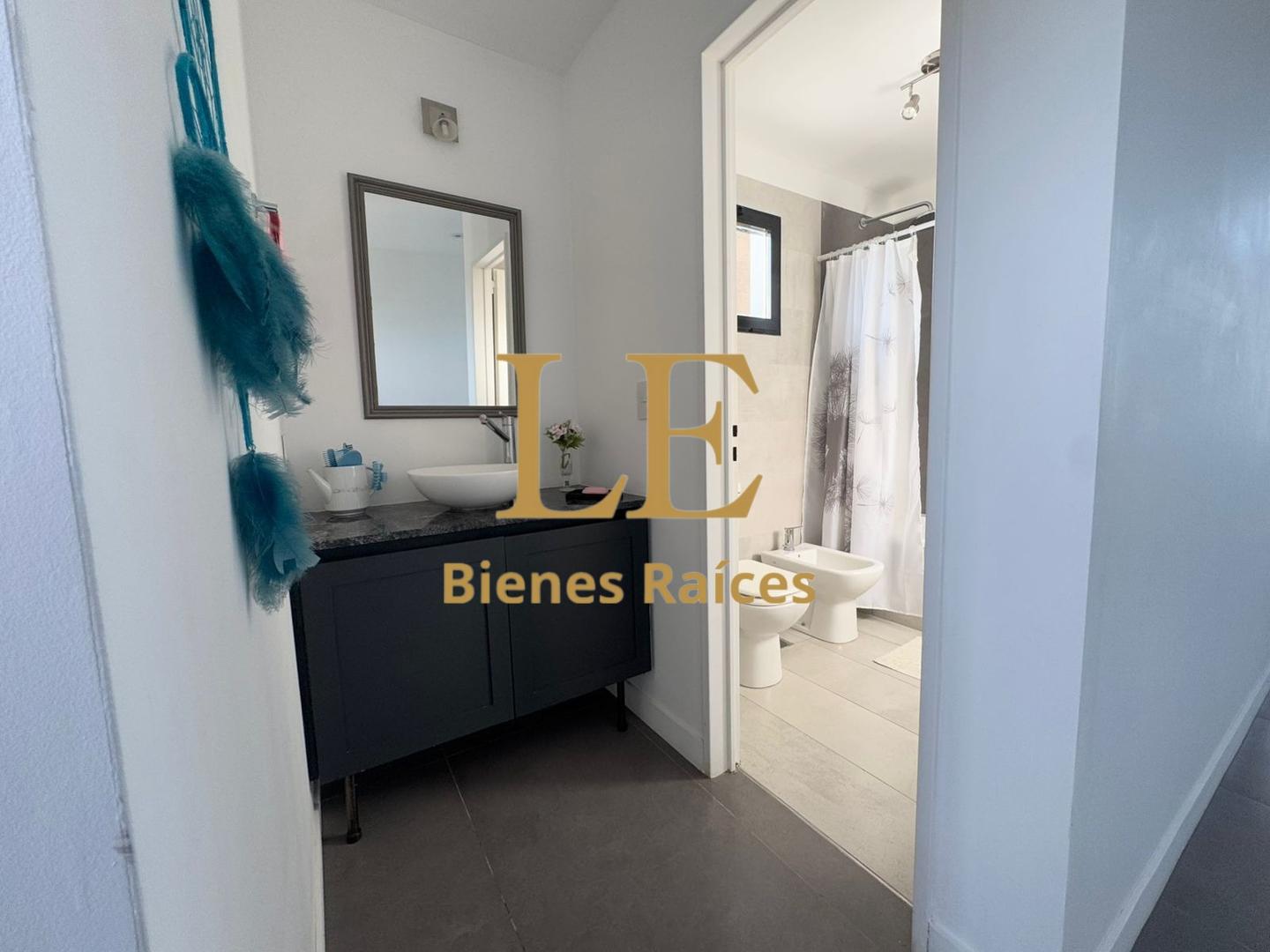 La casa cuenta con dos baños completos; uno de ellos tiene acceso desde la pileta.