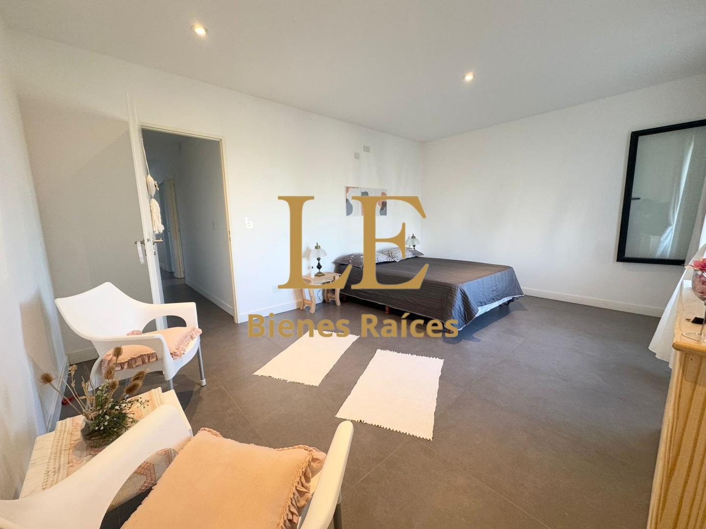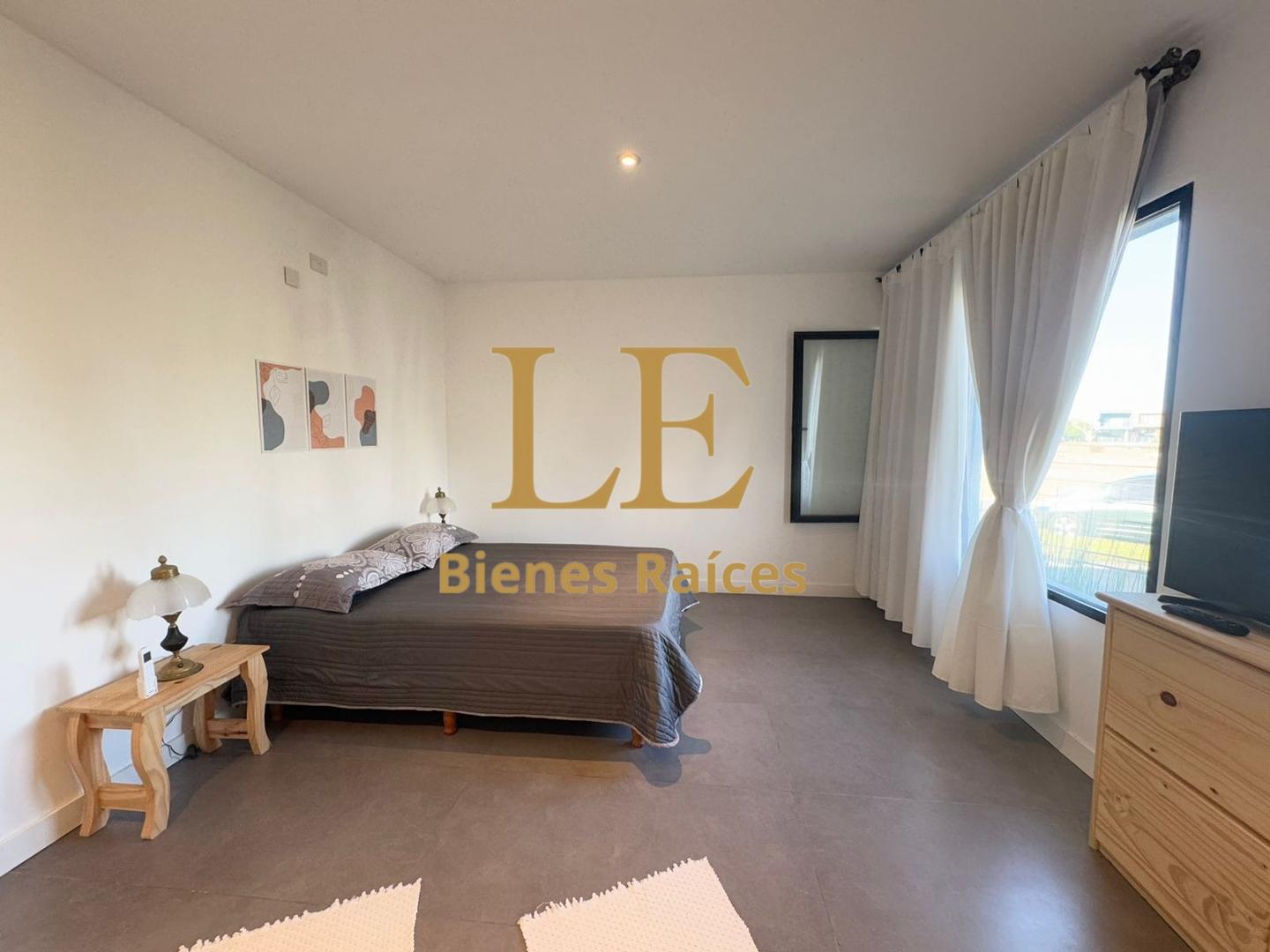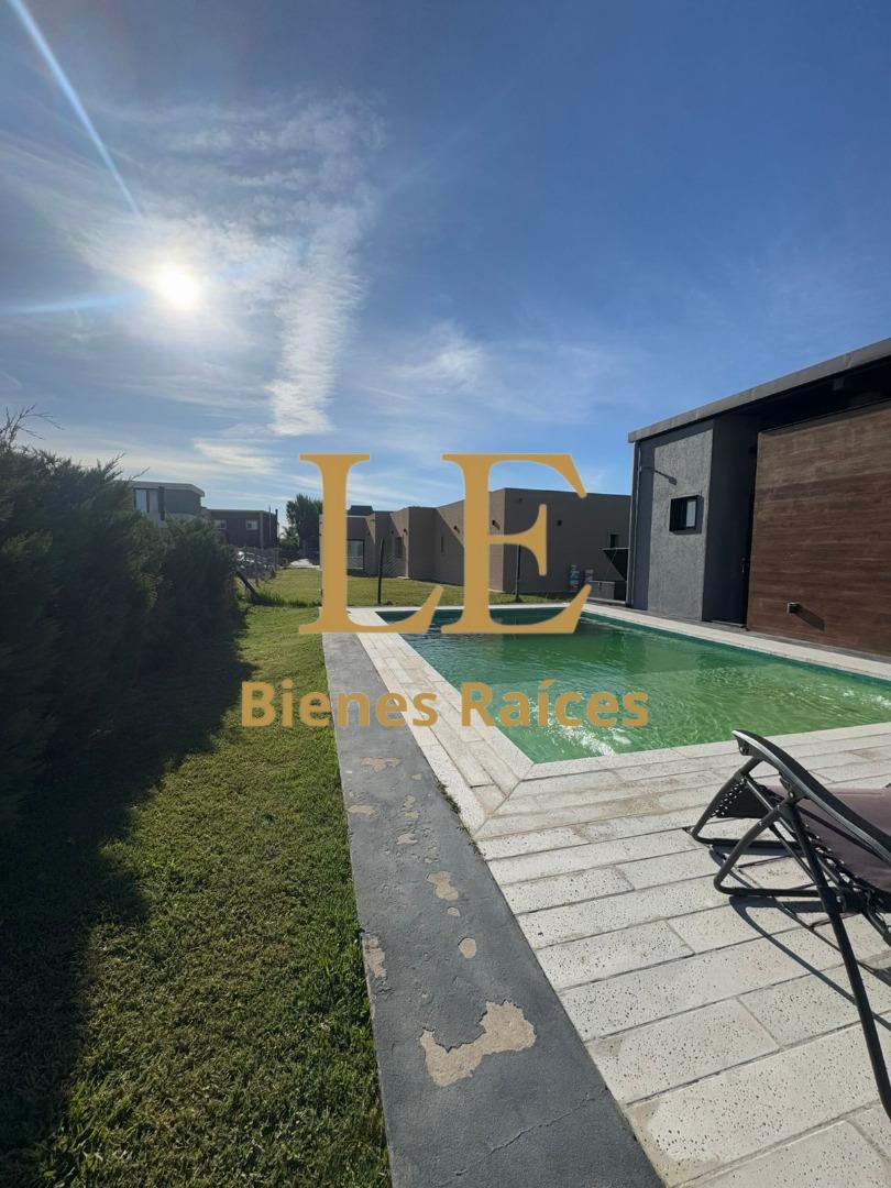 La casa cuenta con dos baños completos; uno de ellos tiene acceso desde la pileta.