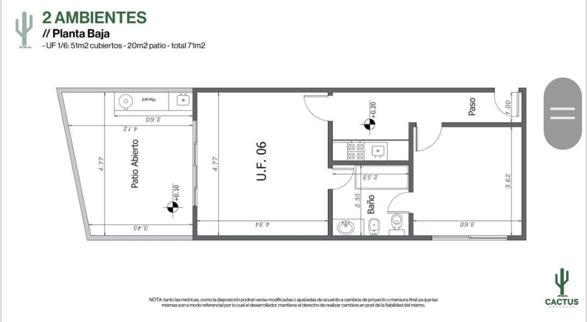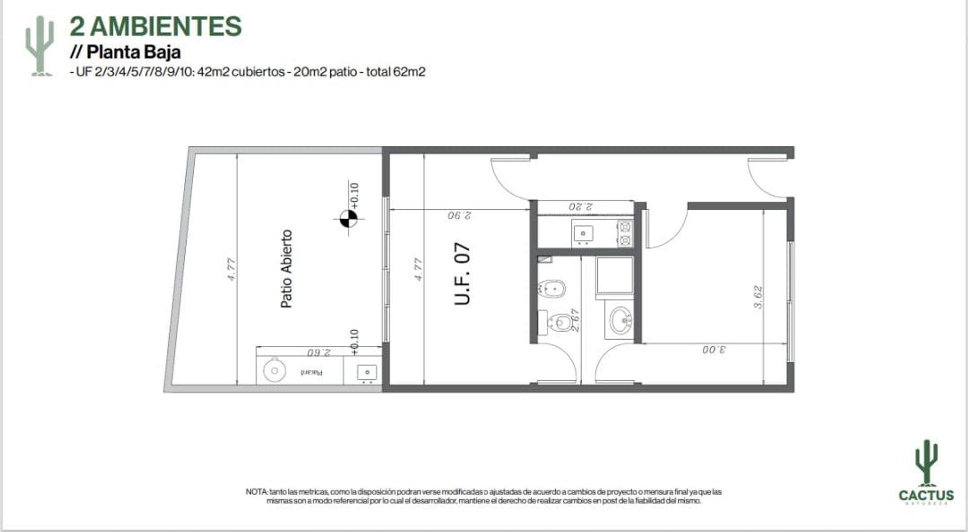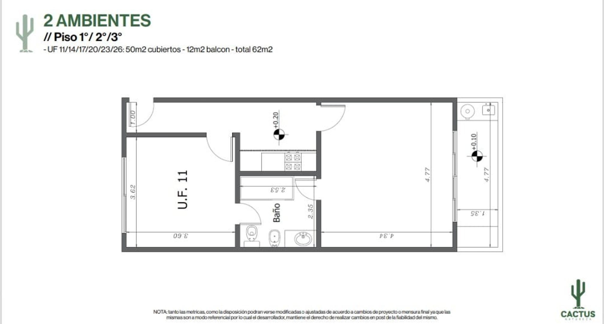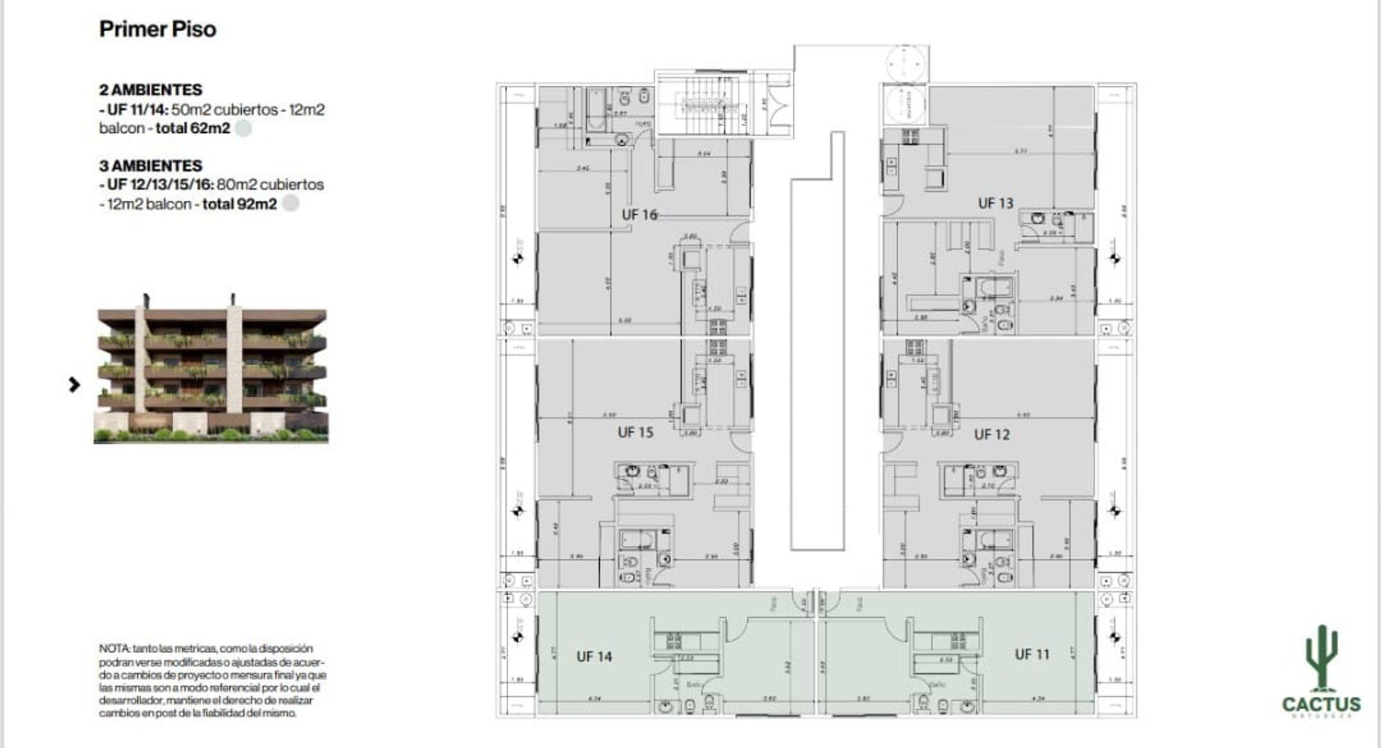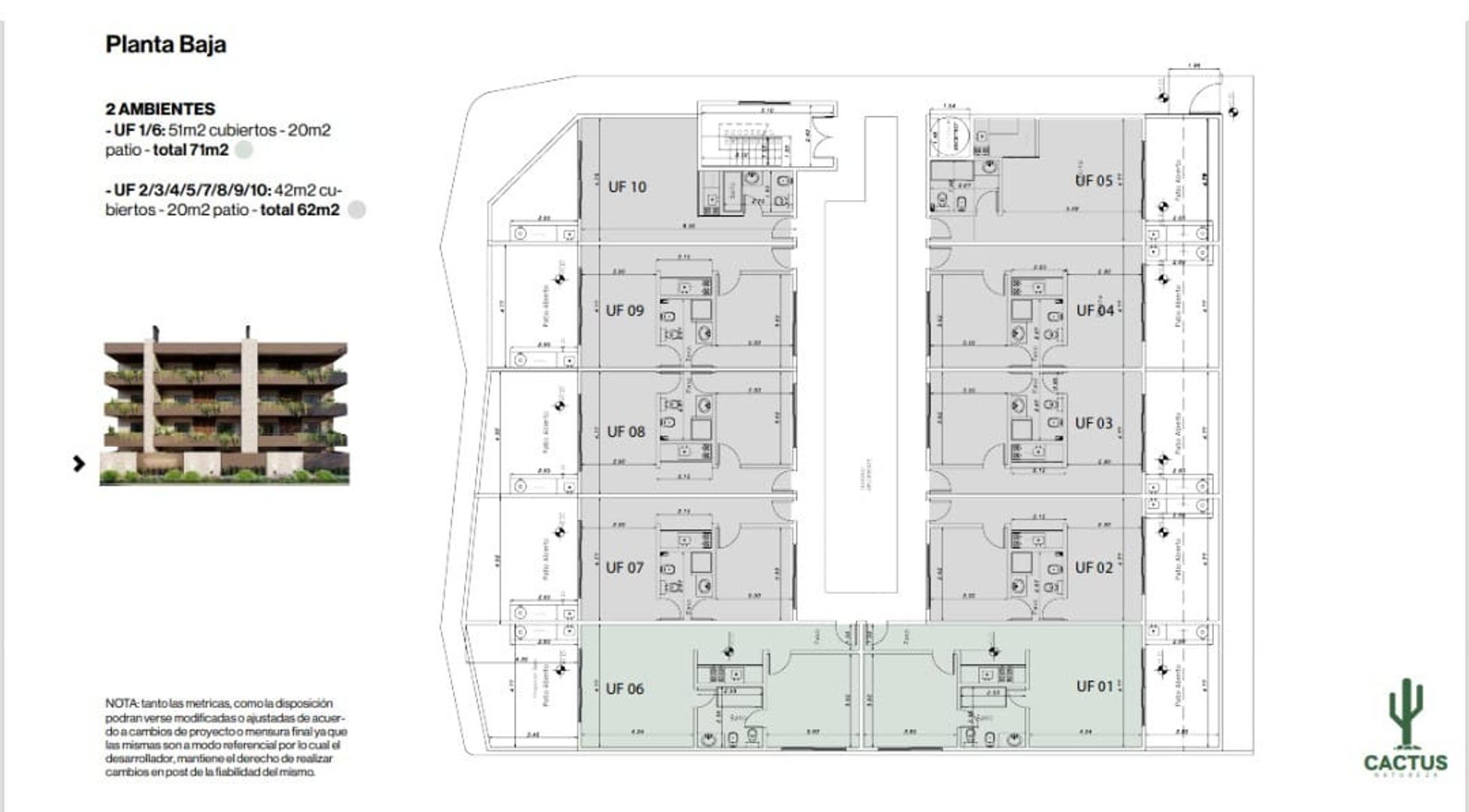 El emprendimiento CACTUS NATUREZA se trata de departamentos que van desde los 40m2 hasta los 100m2 dependiendo de la unidad funcional.