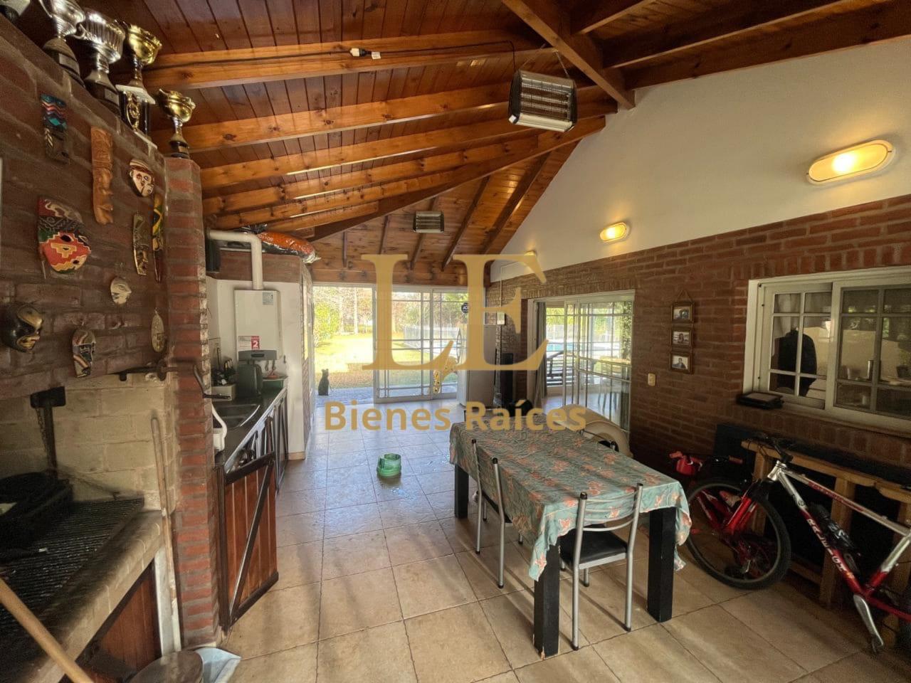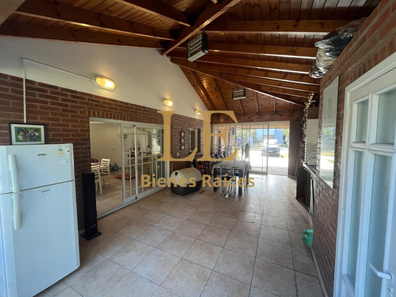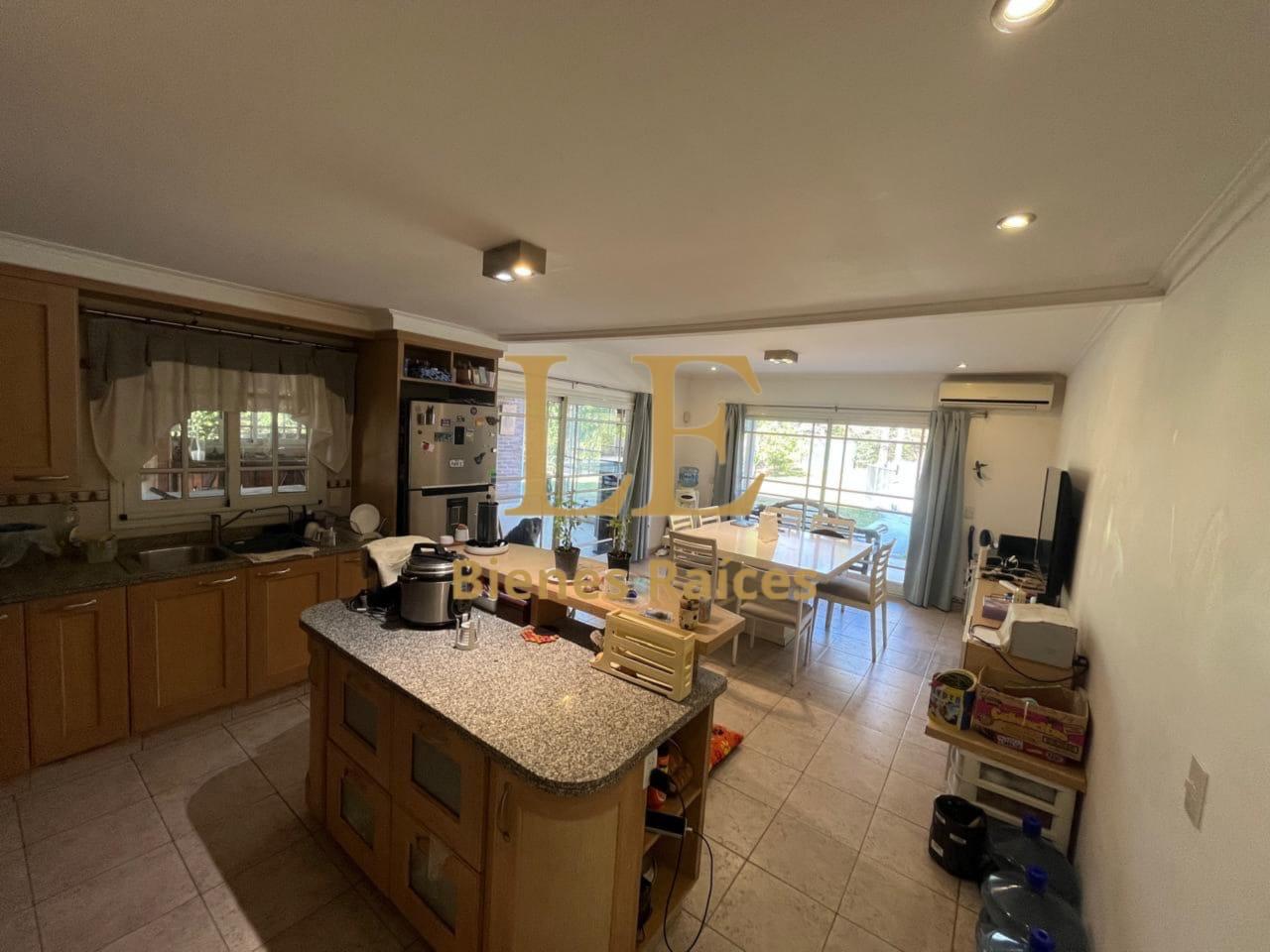 En el ingreso se encuentra un estar/ living aislado de los demas ambientes. Por una puerta se ingresa a la cocina con barra desayunadora y comedor, con salida al quincho cerrado o también garage cubierto (ambos usos). El mismo cuenta con parrilla, bacha, un baño completo y conexión para lavarropas.