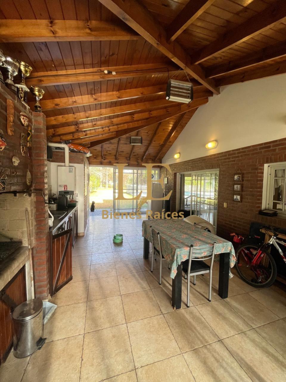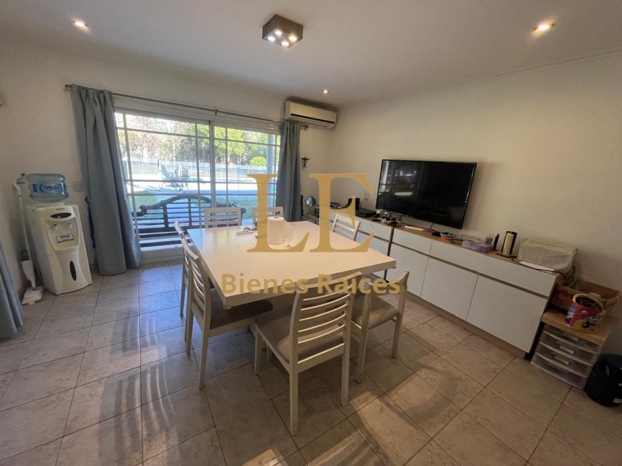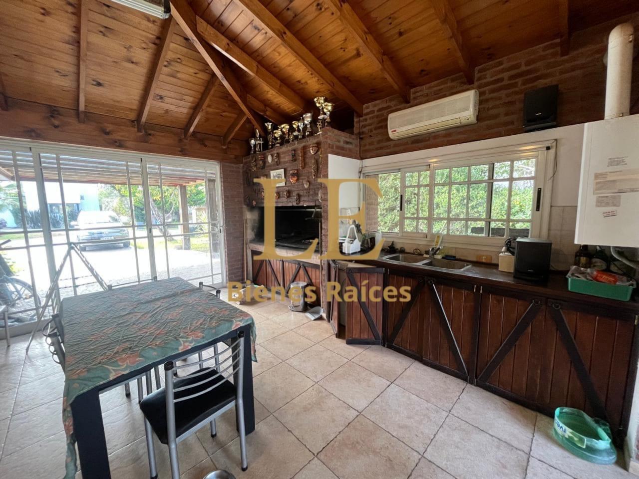 En el ingreso se encuentra un estar/ living aislado de los demas ambientes. Por una puerta se ingresa a la cocina con barra desayunadora y comedor, con salida al quincho cerrado o también garage cubierto (ambos usos). El mismo cuenta con parrilla, bacha, un baño completo y conexión para lavarropas.