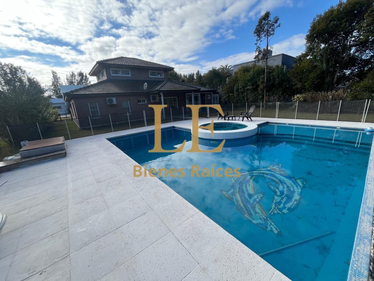 En el exterior, sala de máquinas, jardín con piscina con jacuzzi, y baulera. En el frente, cochera semi cubierta para dos autos, además de la entrada imperial con espacio para tres autos más.