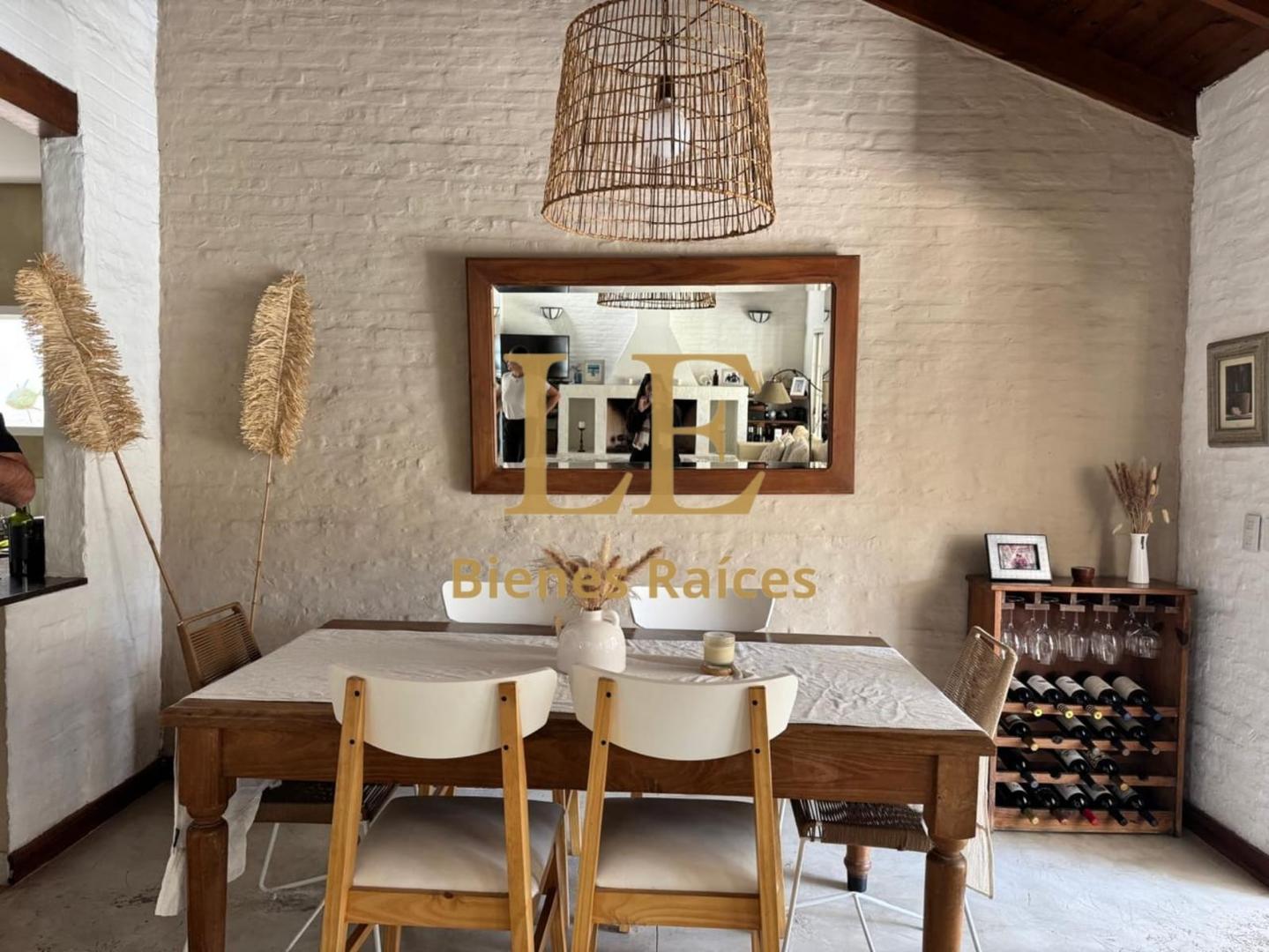 Al ingresar nos recibe un hall de recepción con mucha luz, a continuación tenemos un gran living comedor con hogar a leña y salida a la galería la cual se encuentra cerrada logrando un hermoso ambiente mas con sector de parrilla, cocina cómoda, toilette y habitación en suite en planta baja.