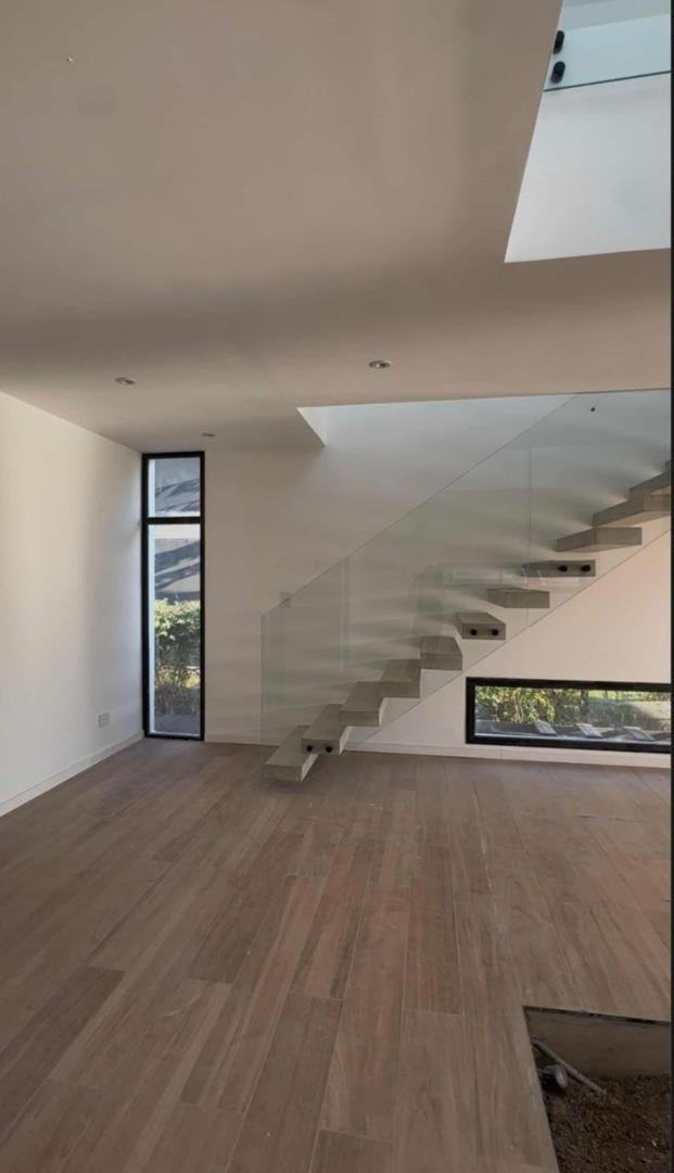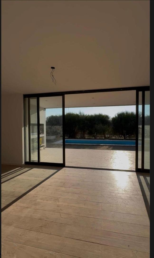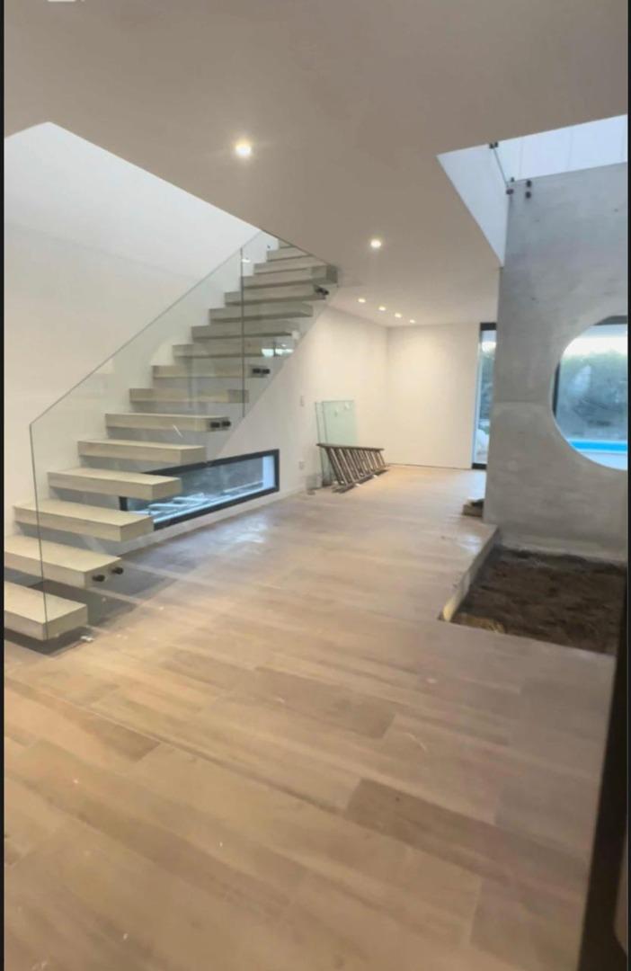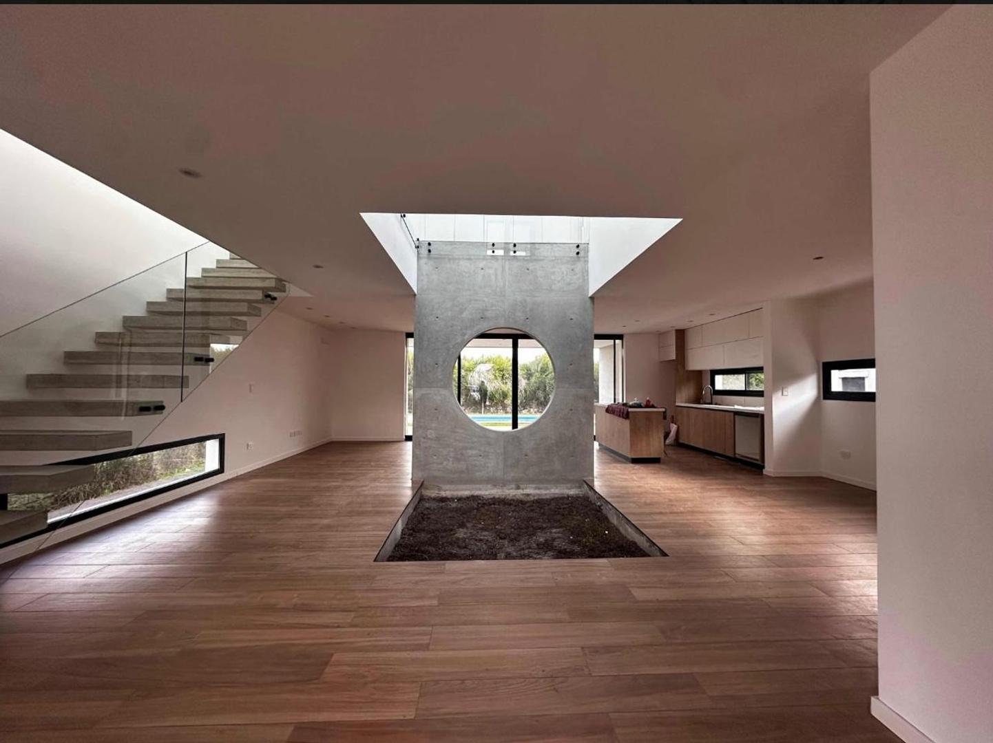 Amplio garage para 6 vehículos ( de los cuales 2 son cubiertos). Cuando ingresas tiene un patio interno con un árbol central y un espacio integrado en torno a el, con living, comedor y cocina con isla y salida a amplia galería. Toilette, galería con parrilla , mesada y bacha, comodo lavadero y baño exterior en sector pileta. Hermosa pileta de hormigón y ducha exterior. Riego por aspersores con equipo Hunter automático. Sala de maquinas con caldera dual Baxi Eco Nova 31 (para losa radiante y agua caliente). Tanques riego y agua enterrados, cisterna con bombas.