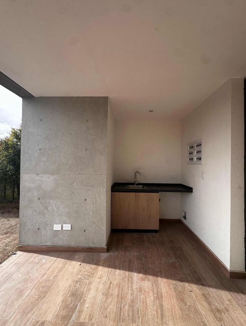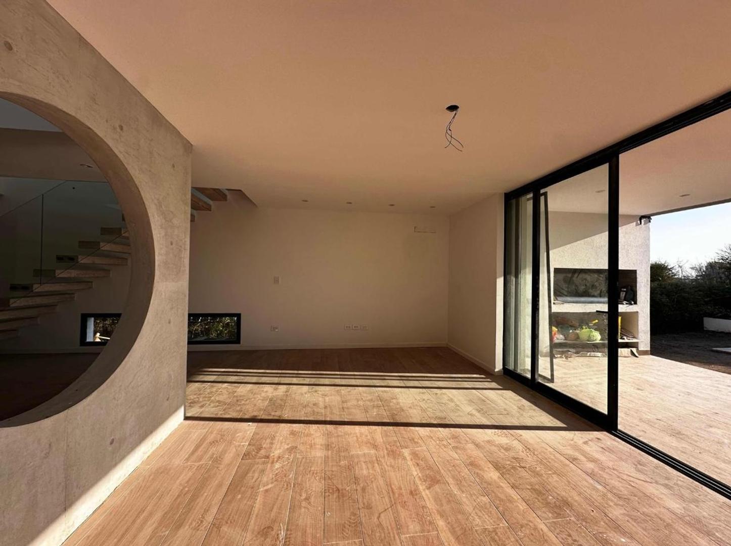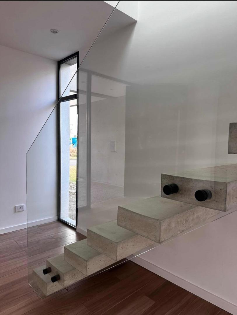 Amplio garage para 6 vehículos ( de los cuales 2 son cubiertos). Cuando ingresas tiene un patio interno con un árbol central y un espacio integrado en torno a el, con living, comedor y cocina con isla y salida a amplia galería. Toilette, galería con parrilla , mesada y bacha, comodo lavadero y baño exterior en sector pileta. Hermosa pileta de hormigón y ducha exterior. Riego por aspersores con equipo Hunter automático. Sala de maquinas con caldera dual Baxi Eco Nova 31 (para losa radiante y agua caliente). Tanques riego y agua enterrados, cisterna con bombas.