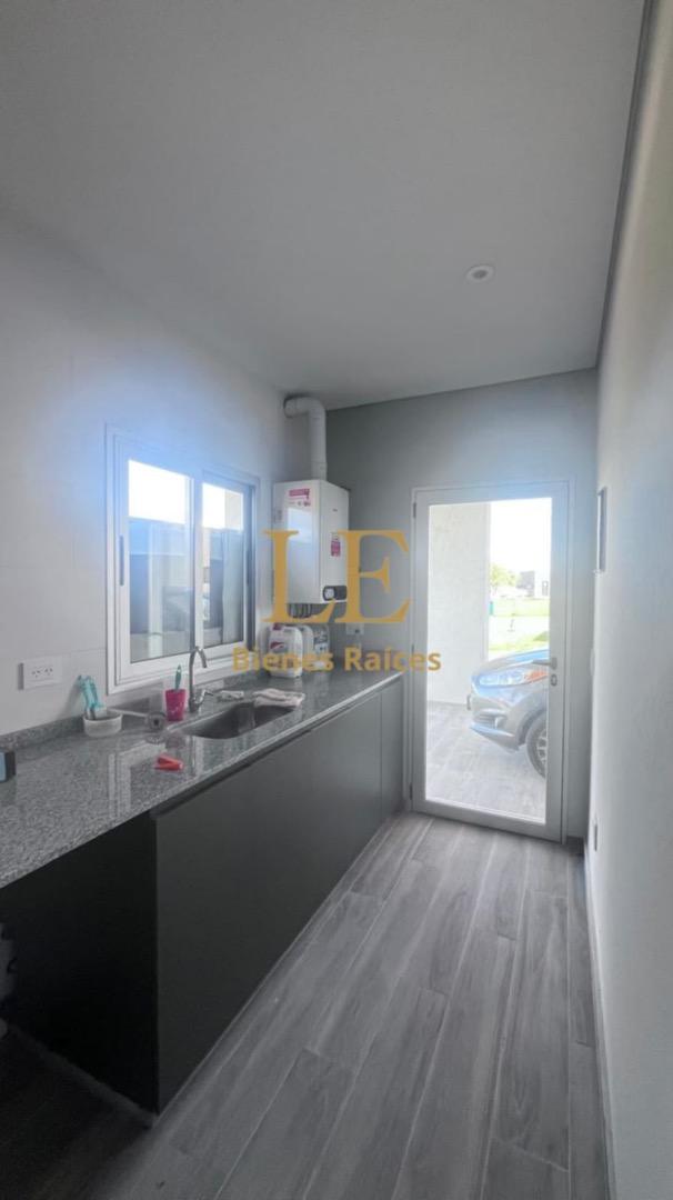 Al ingresar, un hall de recepción conecta con dos accesos: hacia la cocina y hacia una habitación junto a un toilette. El corazón de la casa integra un gran living, comedor y cocina en concepto abierto, con amplio mobiliario de cocina, mesadas de Silestone y lavadero independiente.