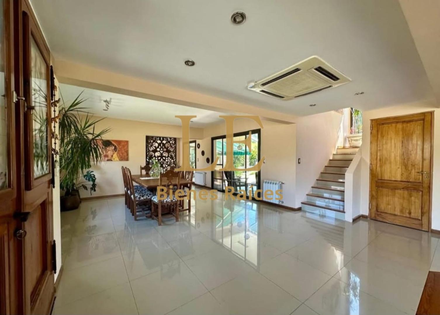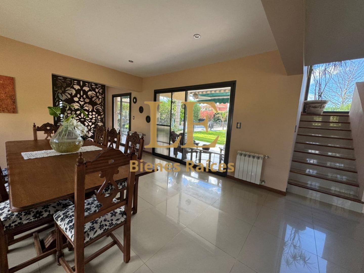 Al ingresar a esta propiedad en el barrio Los Robles, lo primero que encontrás es un hall de recepción que da la bienvenida a un amplio living con grandes ventanales, donde la luz natural realza cada rincón. Este espacio se conecta con el comedor principal, ideal para reuniones familiares, y con una cocina independiente equipada con isla central y un comedor diario que se abre a la galería, generando un ambiente perfecto entre interior y exterior.