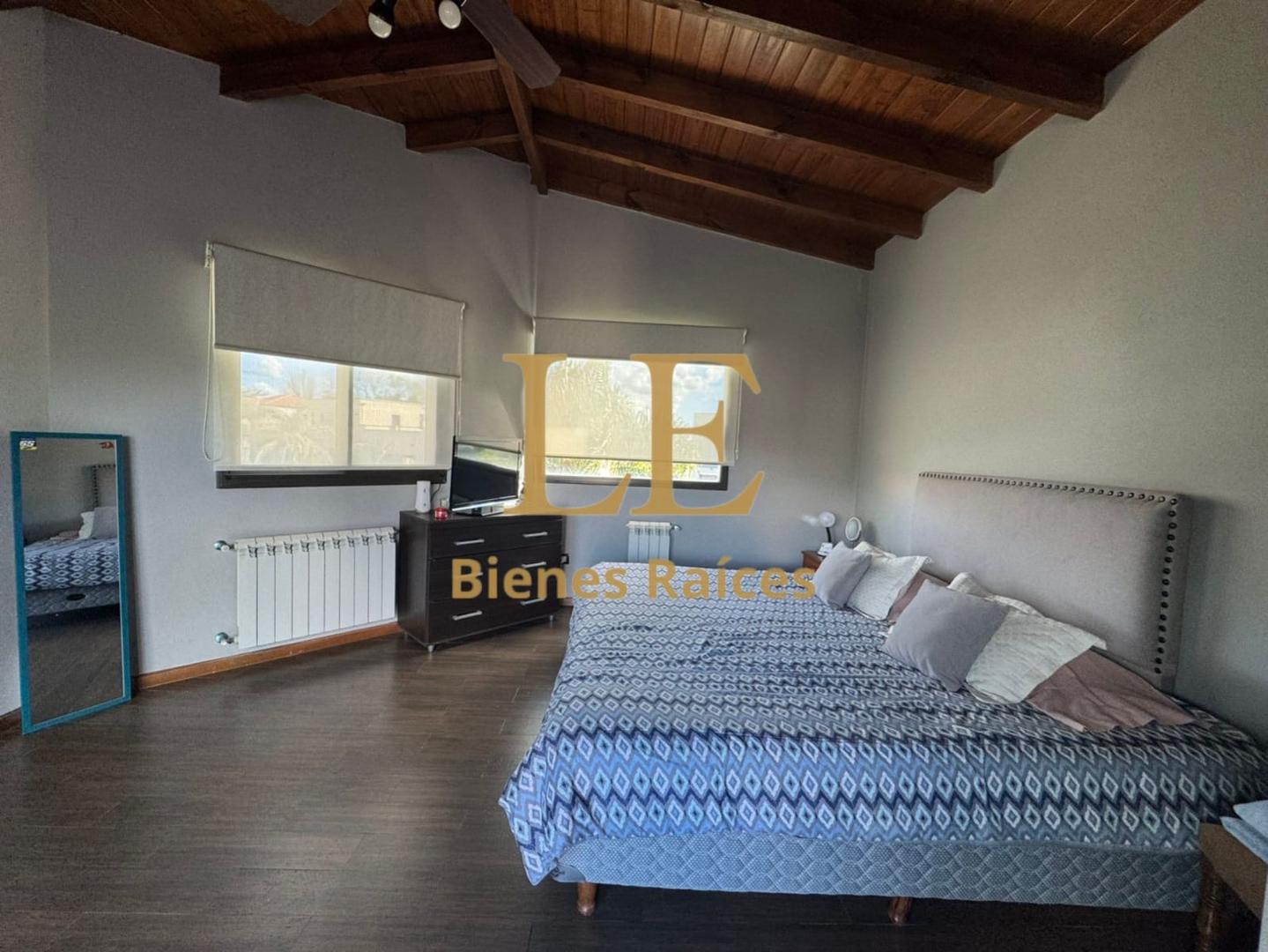 Subiendo al segundo piso, un hall de distribución conecta los dormitorios. La suite principal cuenta con vestidor y baño privado, brindando intimidad y confort. Además, dos dormitorios adicionales comparten un baño compartimentado, pensado para mayor practicidad.