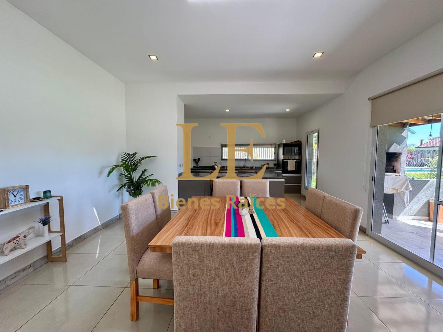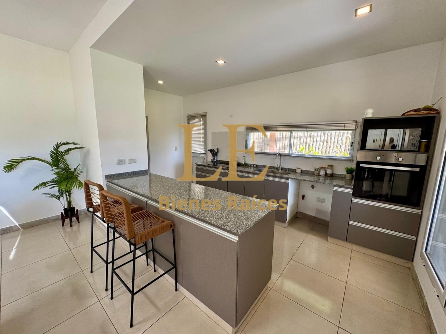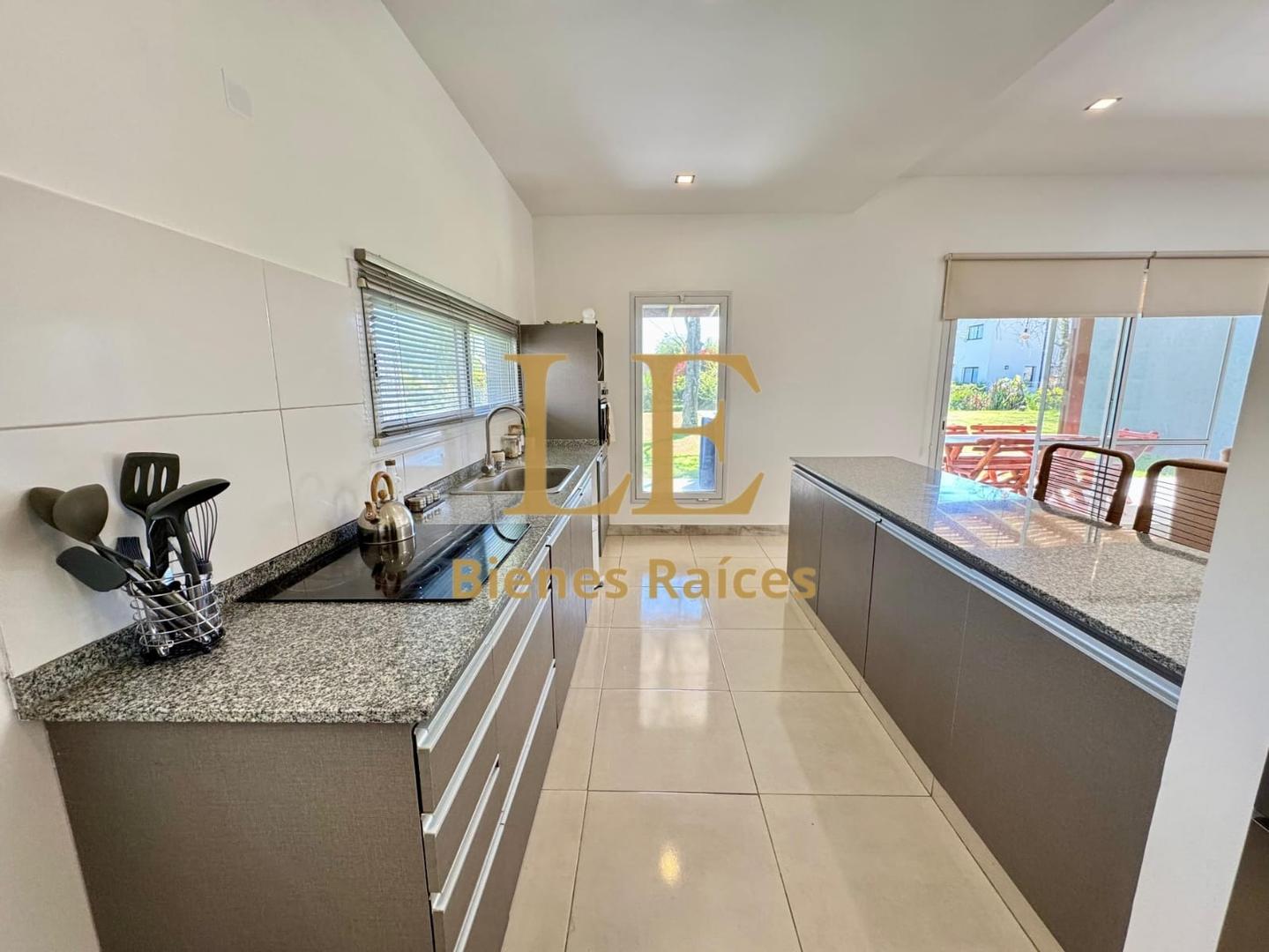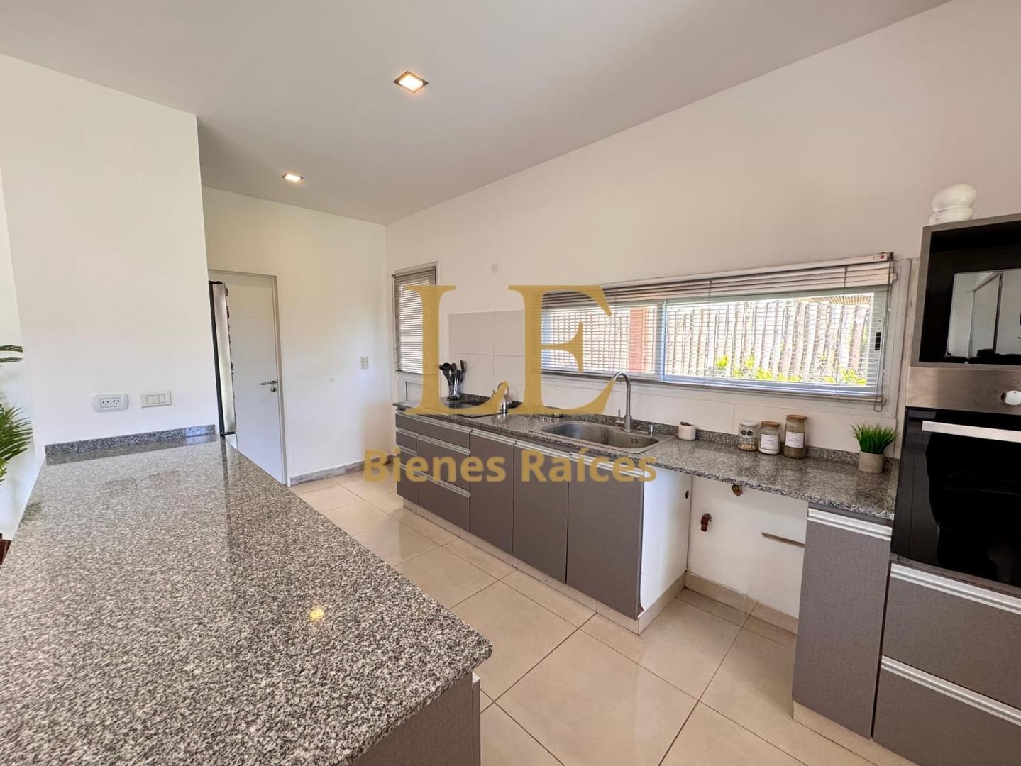 La casa cuenta con un hermoso living comedor con salida a la galería y vista al jardín, cocina con barra, horno y anafe, lavadero, dependencia de servicio con baño completo, tres dormitorios el principal en suite con vestidor y los otros dos con baño compartimentado e interiores de placard.
