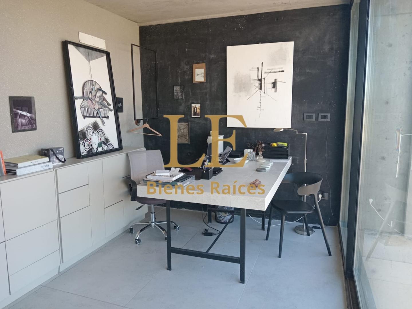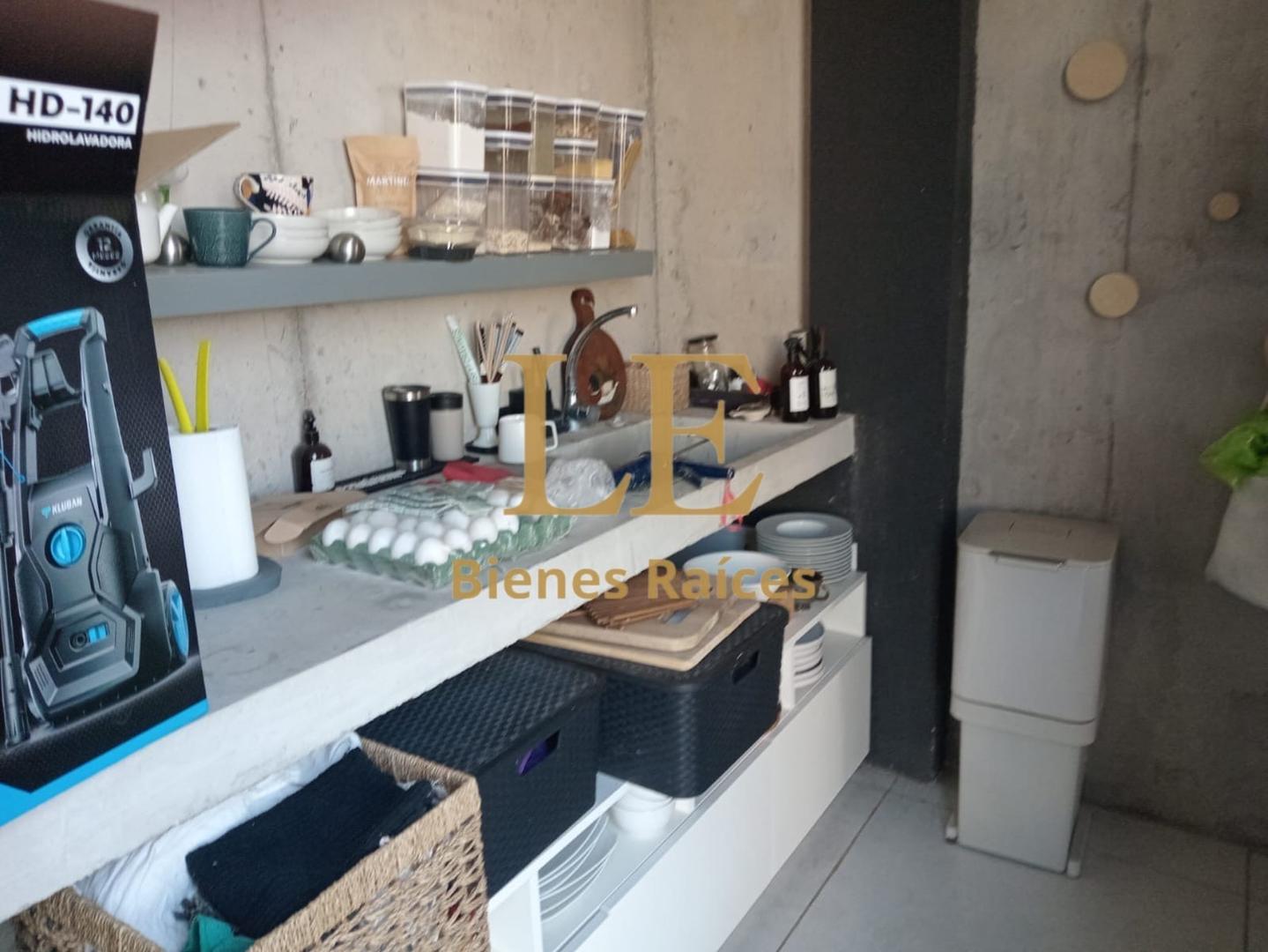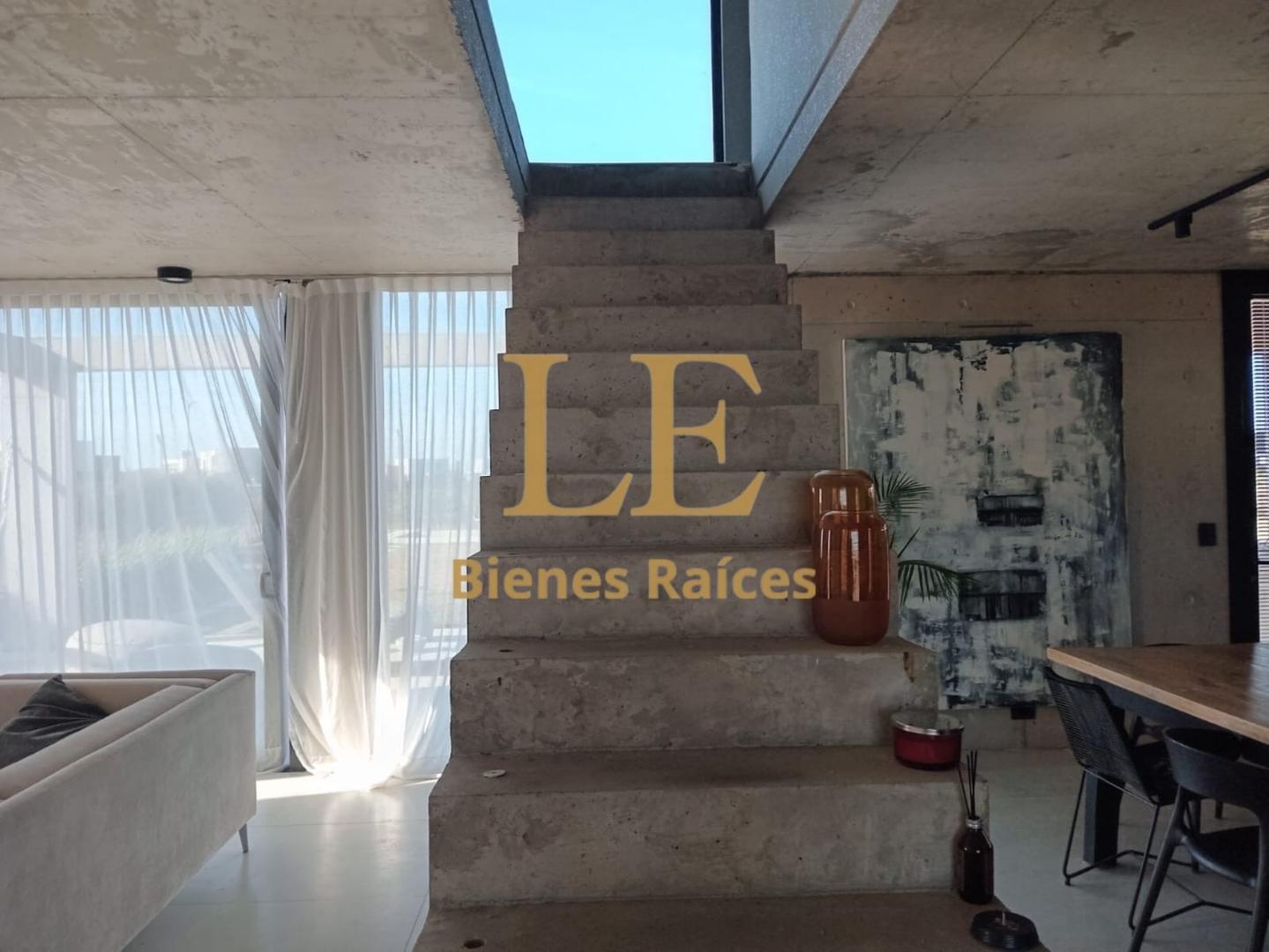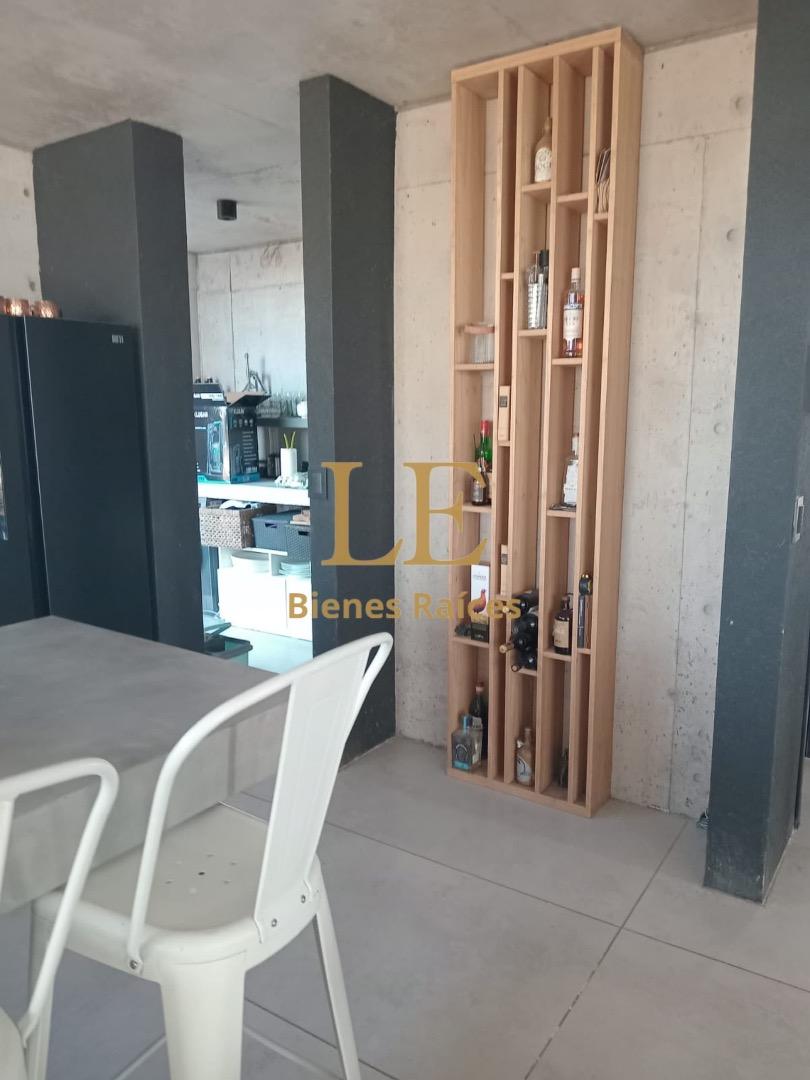 La cocina con comedor semi integrada con gran isla de hormigon,completamente equipada con modernos electrodomésticos. En el exterior, una cómoda galería con parrilla con cerramiento de hierro y un jardín privado con parquización y una pileta de natación con preinstalacion para climatizar por paneles solares.