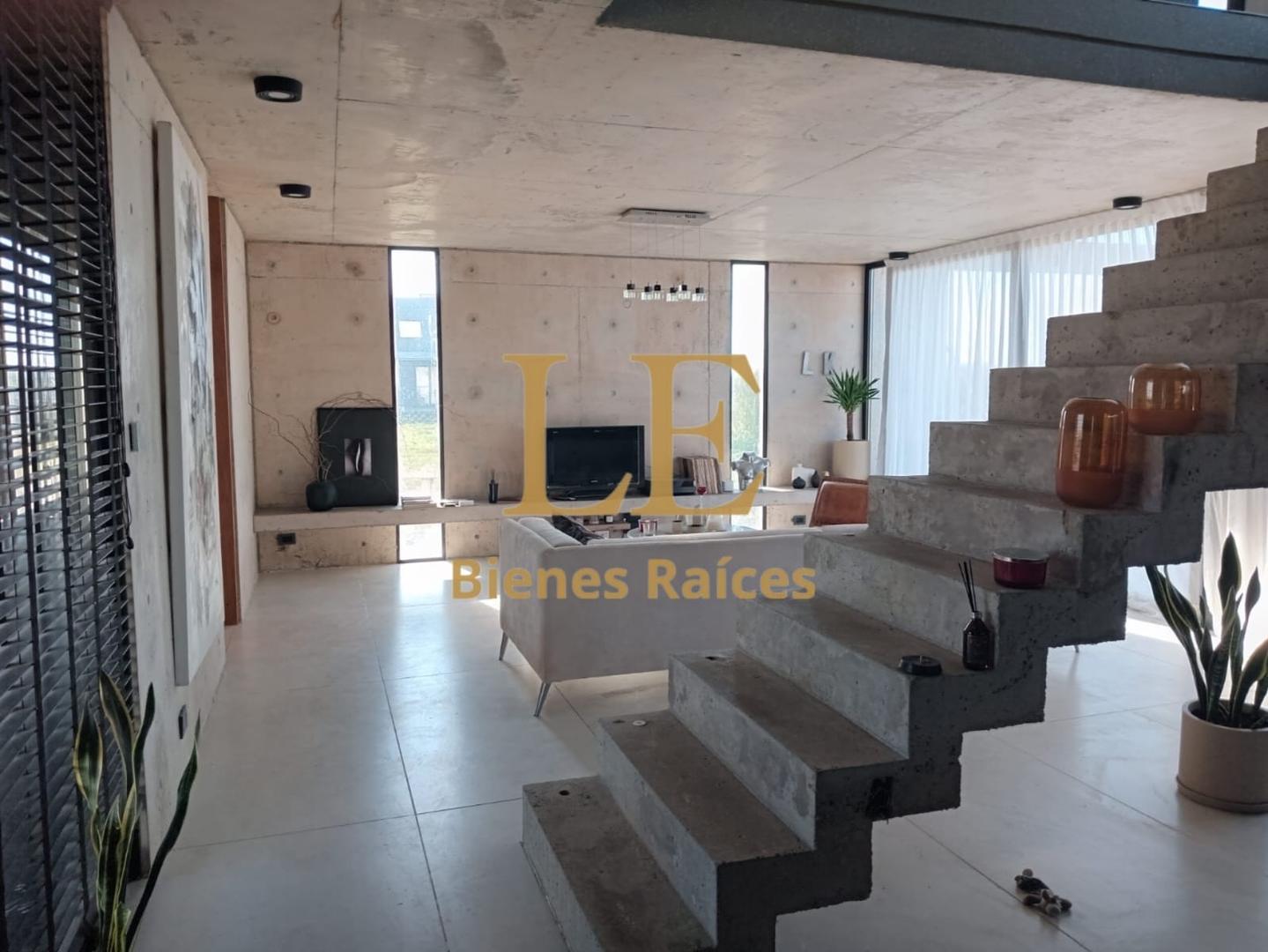 Imponente casa de hormigon , ubicada en Area 8, sobre un lote de 806 metros cuadrados. Superficie cubierta 173,86m2 y semicubierta 56,70 m2. De arquitectura moderna y sofisticada en dos plantas, con acabados de alta calidad que realzan su atractivo visual. Un amplio living-comedor y cocina de concepto abierto nos recibe al ingresar a esta propiedad por una puerta de hierro. La casa incluye una variedad de comodidades adicionales, un toilette de recepción para invitados, una habitación de huéspedes en suite y un lavadero. Cuenta con tres amplios dormitorios en la planta alta, uno en suite con baño y vestidor y los otros dos con baño compartido. Amplios ventanales en toda la casa que permiten la entrada de luz natural, creando un ambiente acogedor y luminoso.