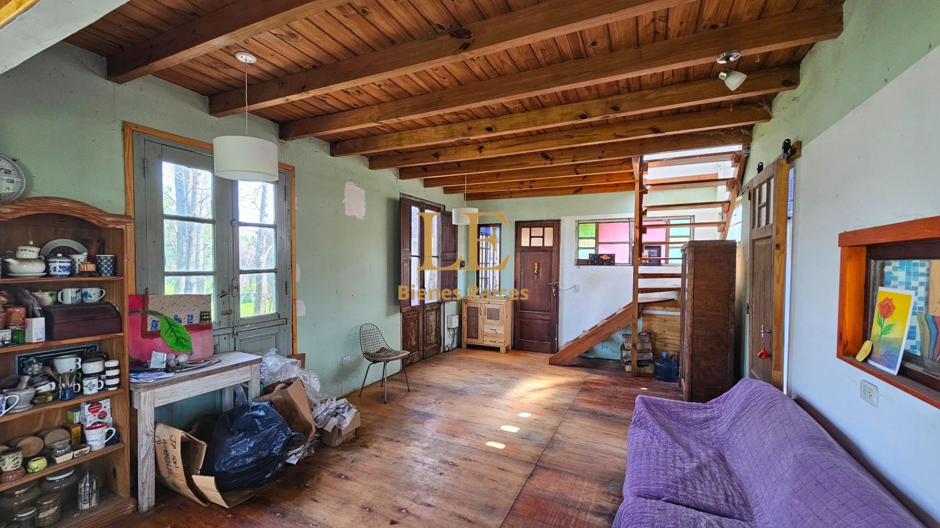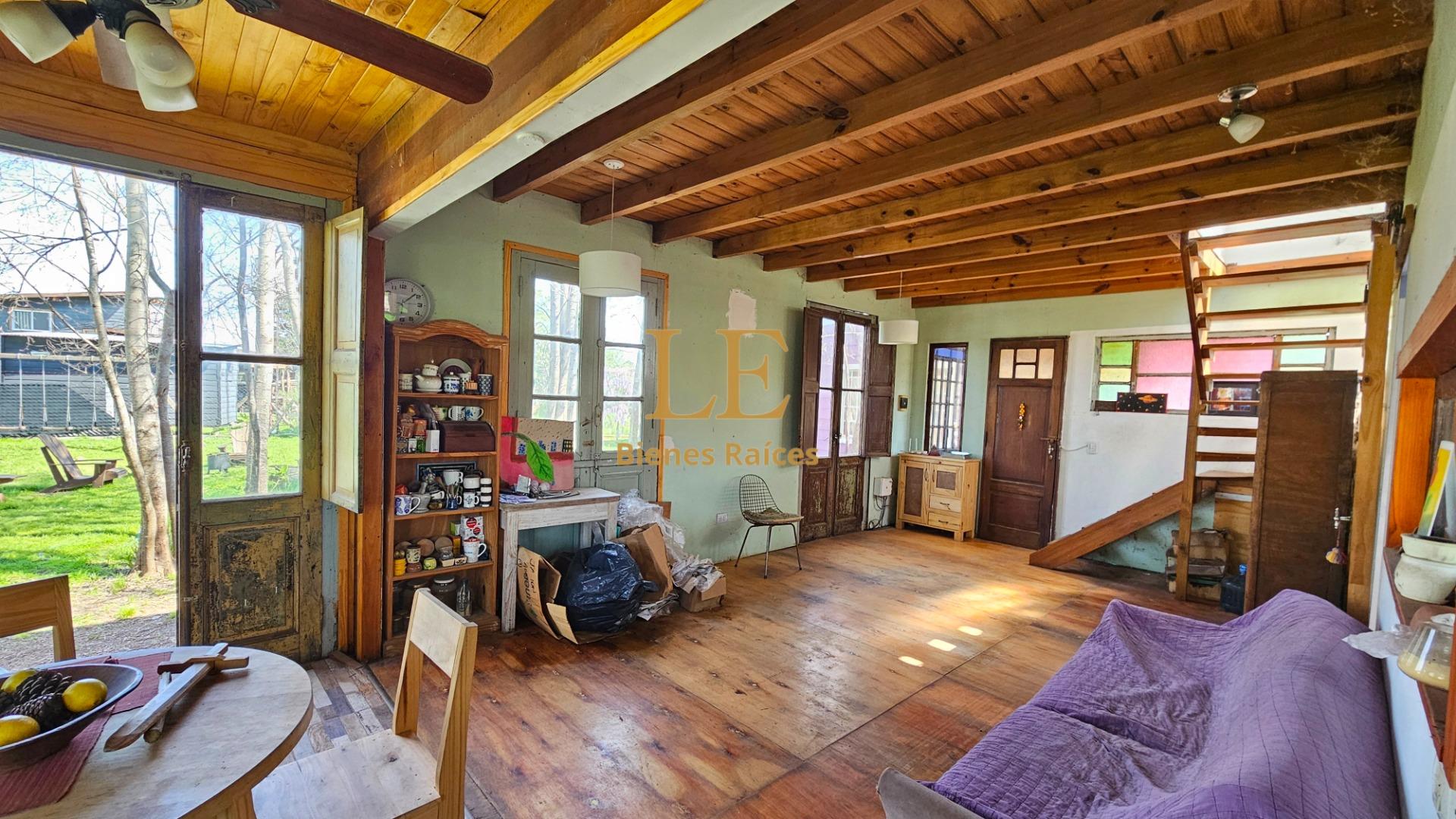 Casa construida en madera, steel, y aberturas de demolición: al ingreso hall y porch de acceso, queda a cocina living comedor integrado con baño y lavadero,y en planta alta 2 dormitorios. Del otro lado del porch, gran playroom o espacio de usos multiples de 35mts2. Jardín al frente y fondo. Espacio de guardado al fondo.