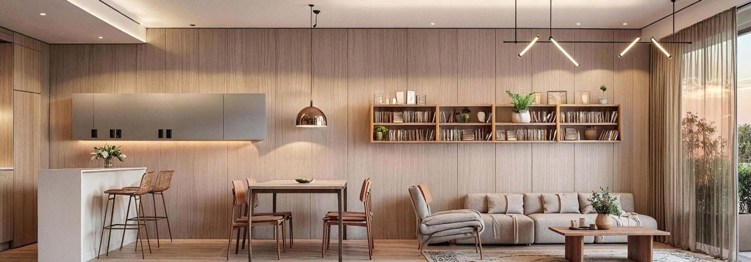 Cuando se trate de cocina integrada se colocará piso de porcelanato de grandes dimensiones.