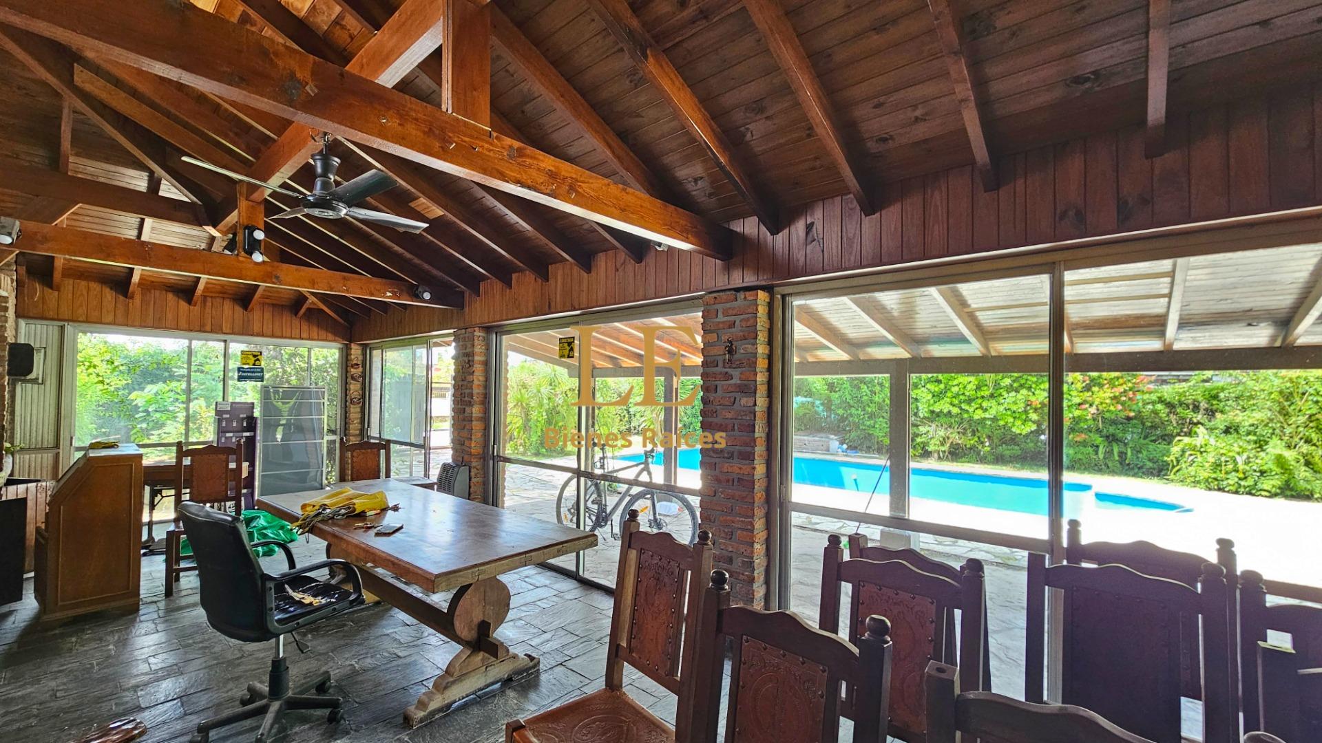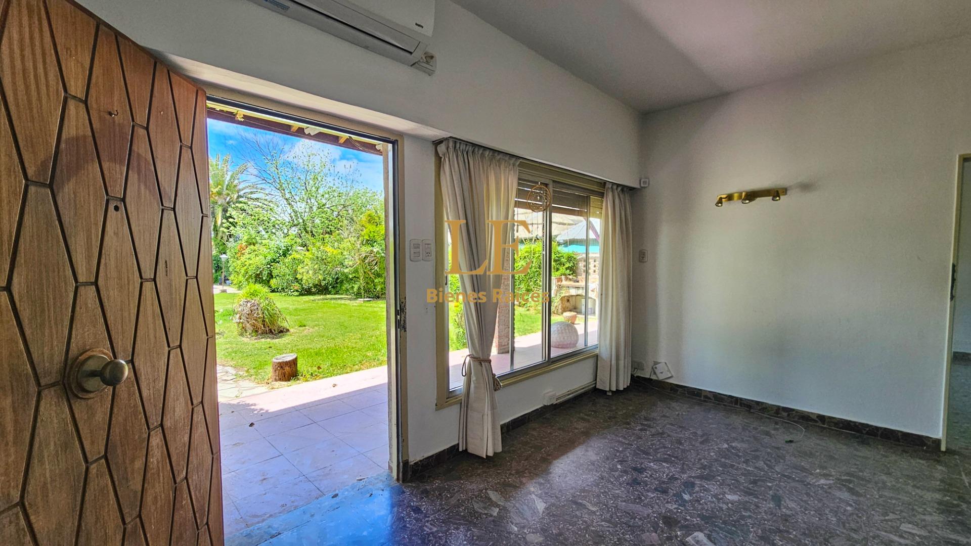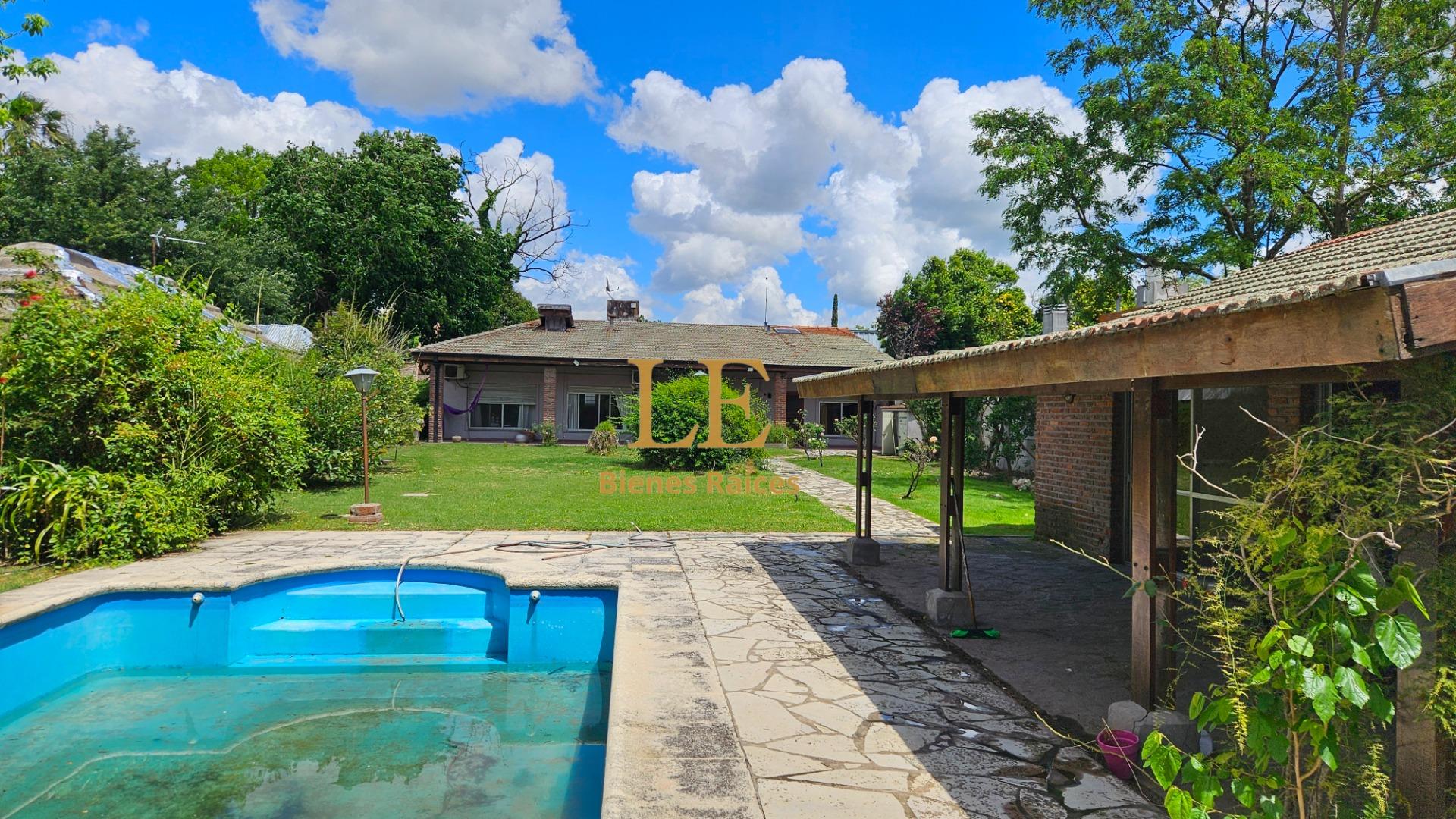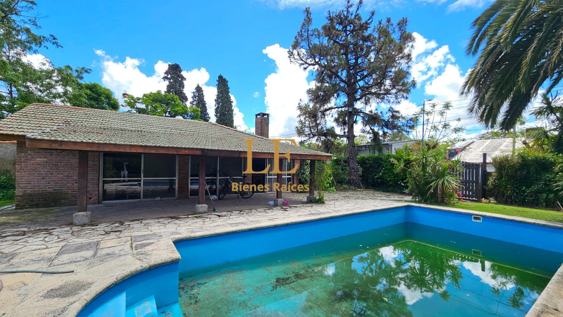 La propiedad está implantada sobre un doble lote de 866 m² (17×50) y cuenta con una construcción solida de doble pared con cámara y funcional. Totalmente en planta baja dispone de un amplio living-comedor con estufa, cocina comedor con entrepiso para escritorio, 3 dormitorios grandes y con placares, baño completo. Todas sus cortinas se levantan eléctricamente y calefaccionada por tiros balanceados y aires acondicionados. En exterior gran quincho con parrilla y baño, piscina con solarium, lavadero independiente. Gran jardín con frutales.