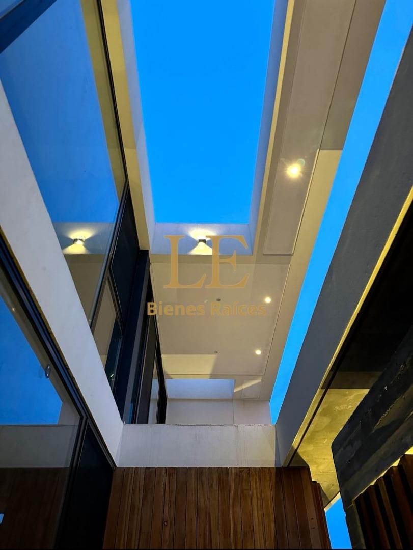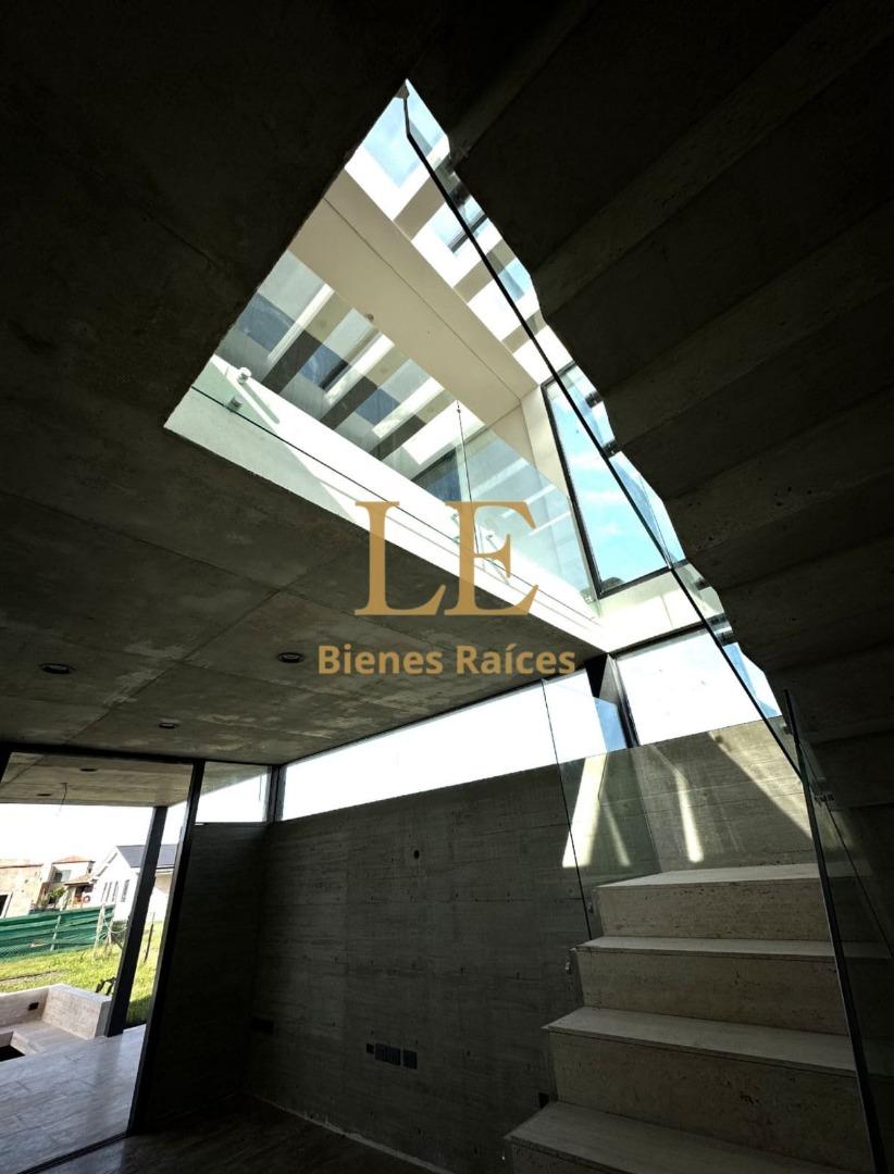Emplazada en el corazón de Escobar, esta propiedad combina de manera magistral la potencia del hormigón visto con la calidez de la madera noble y la transparencia de paños vidriados de piso a techo, creando una atmósfera única y una conexión total con el exterior.