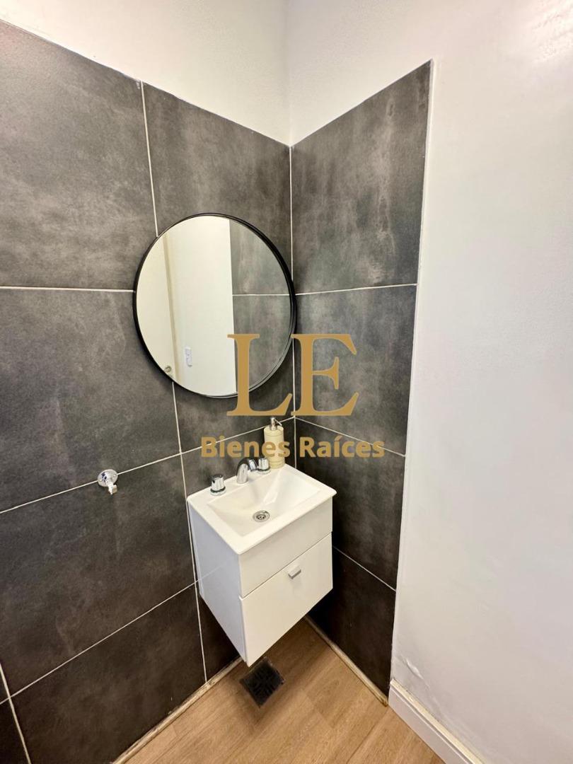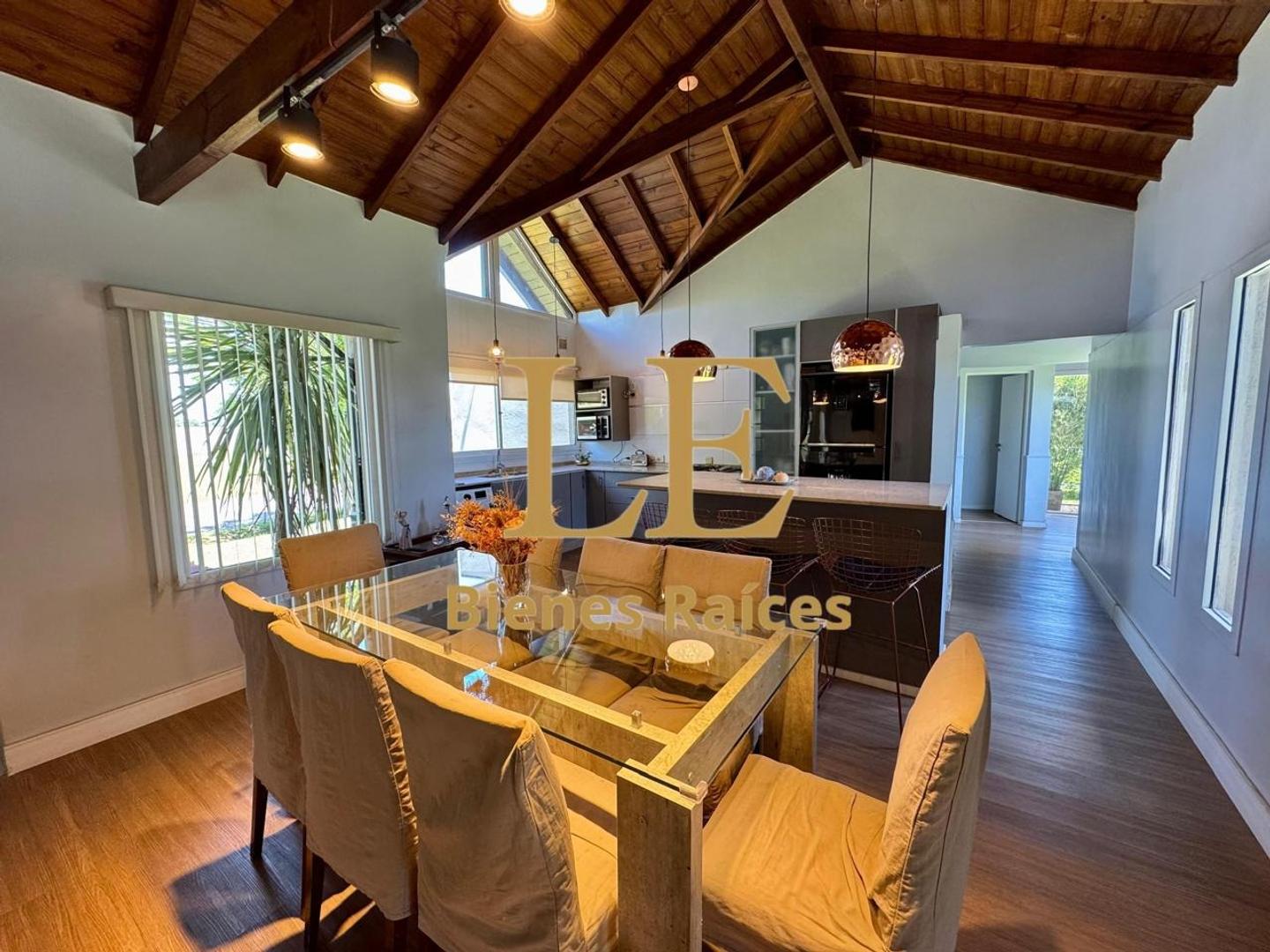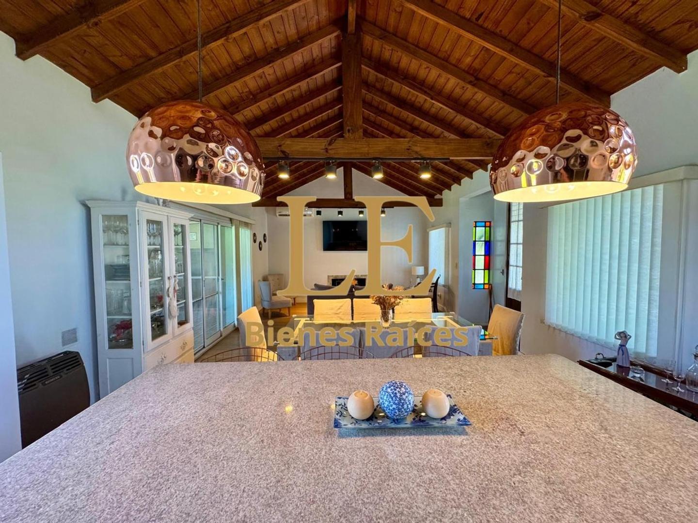 En el ingreso tiene un hall de recepción con vitro y calcáreos en el piso pintados a mano. Pasamos a un living comedor con hogar, muy luminoso con vistas a la galería y el jardín y la cocina esta entregada con una isla que divide los sectores. Cuenta con amplio lugar de guardado.