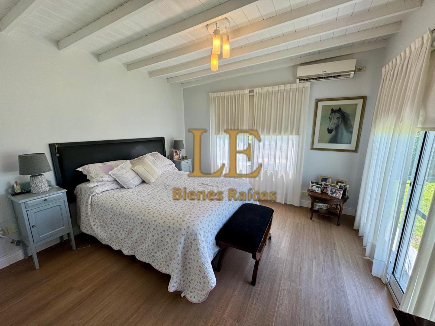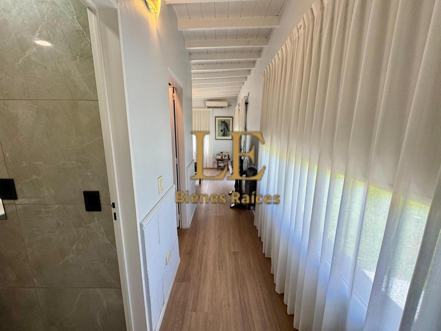 A los dormitorios se in presa por un pasillo distribuidor con ventana al jardín. Son 3 dormitorios, uno en suite con vestidor y baño privado con salida al jardín. Los 2 restantes con placares empotrados. Los baños están renovados, 2 son completos y otro es un toilette de recepción.