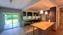 desde el living se puede acceder a través de una puerta de dos hojas a un espacio que puede tener usos múltiples ya que cuenta con baño completo y salida a dos cocheras semi cubiertas y cerradas con un portón exterior.