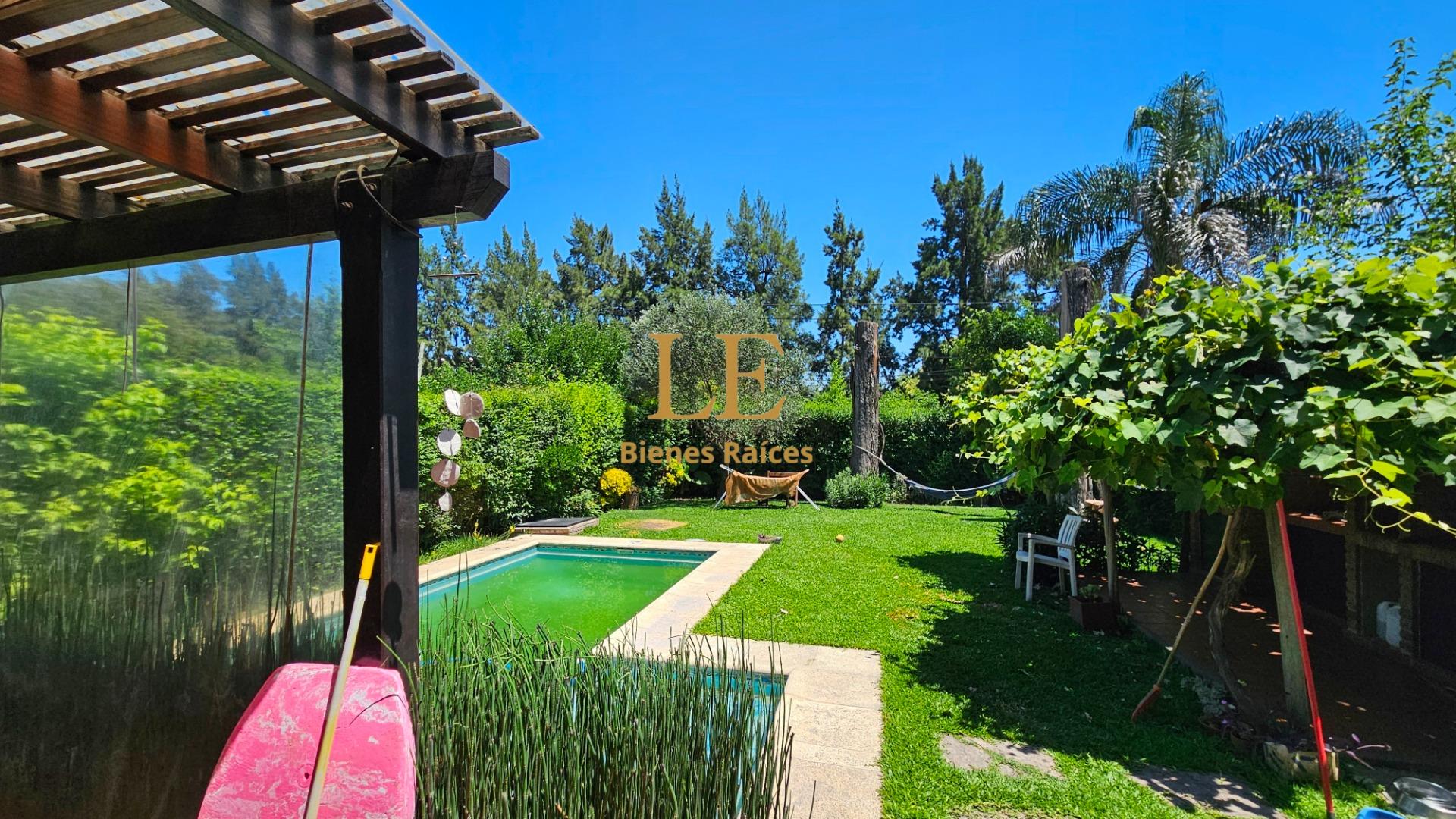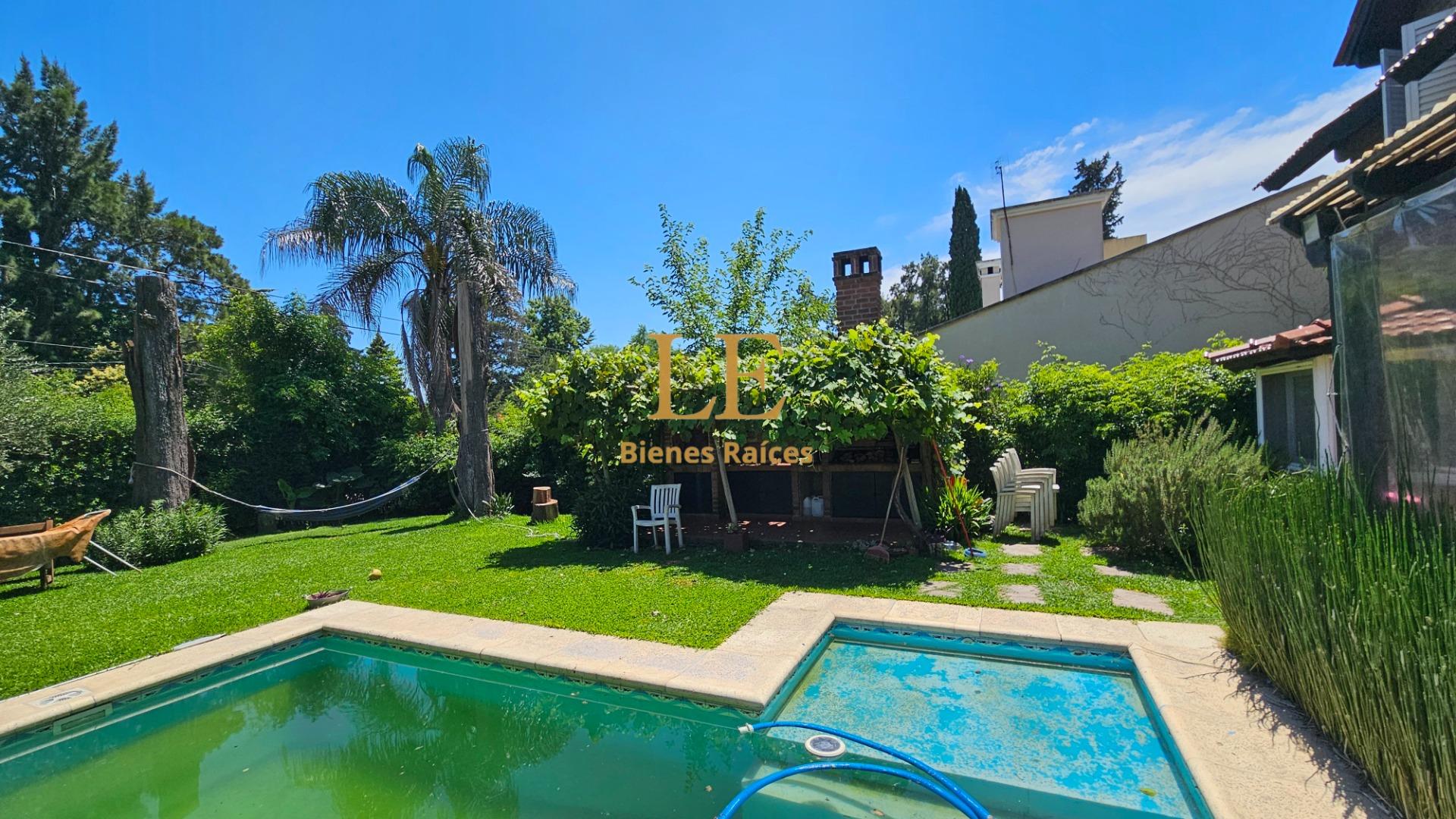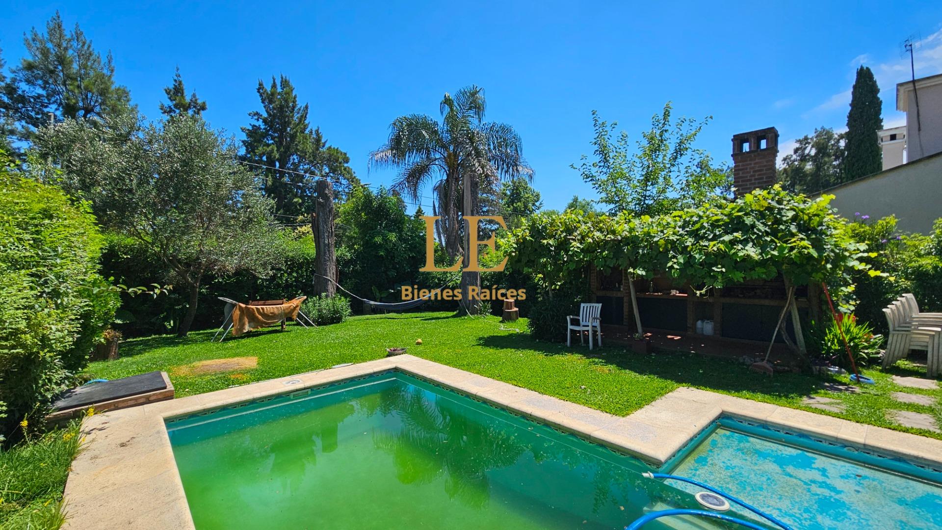 En el exterior, la casa ofrece una galería semicubierta con parrilla, piscina con solárium y un amplio parque arbolado que brinda privacidad y buen espacio de disfrute al aire libre.