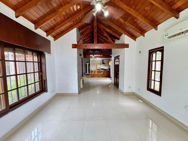 Además, dispone de lavadero independiente, baño completo, dos amplios dormitorios con placard, y un tercer dormitorio en suite con baño privado a terminar, brindando la posibilidad de personalizar este espacio. En el exterior se destaca la galería con parrilla, un gran jardín tanto al frente como en el fondo, y cocheras semicubiertas.