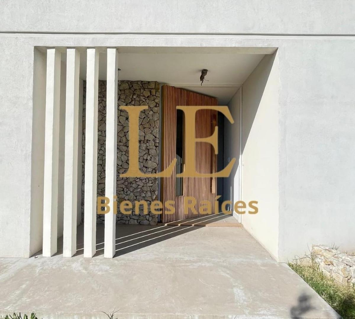 Porche de entrada y frente con detalles de piedra en el frente que le dan personalidad, hermosa puerta de entrada.