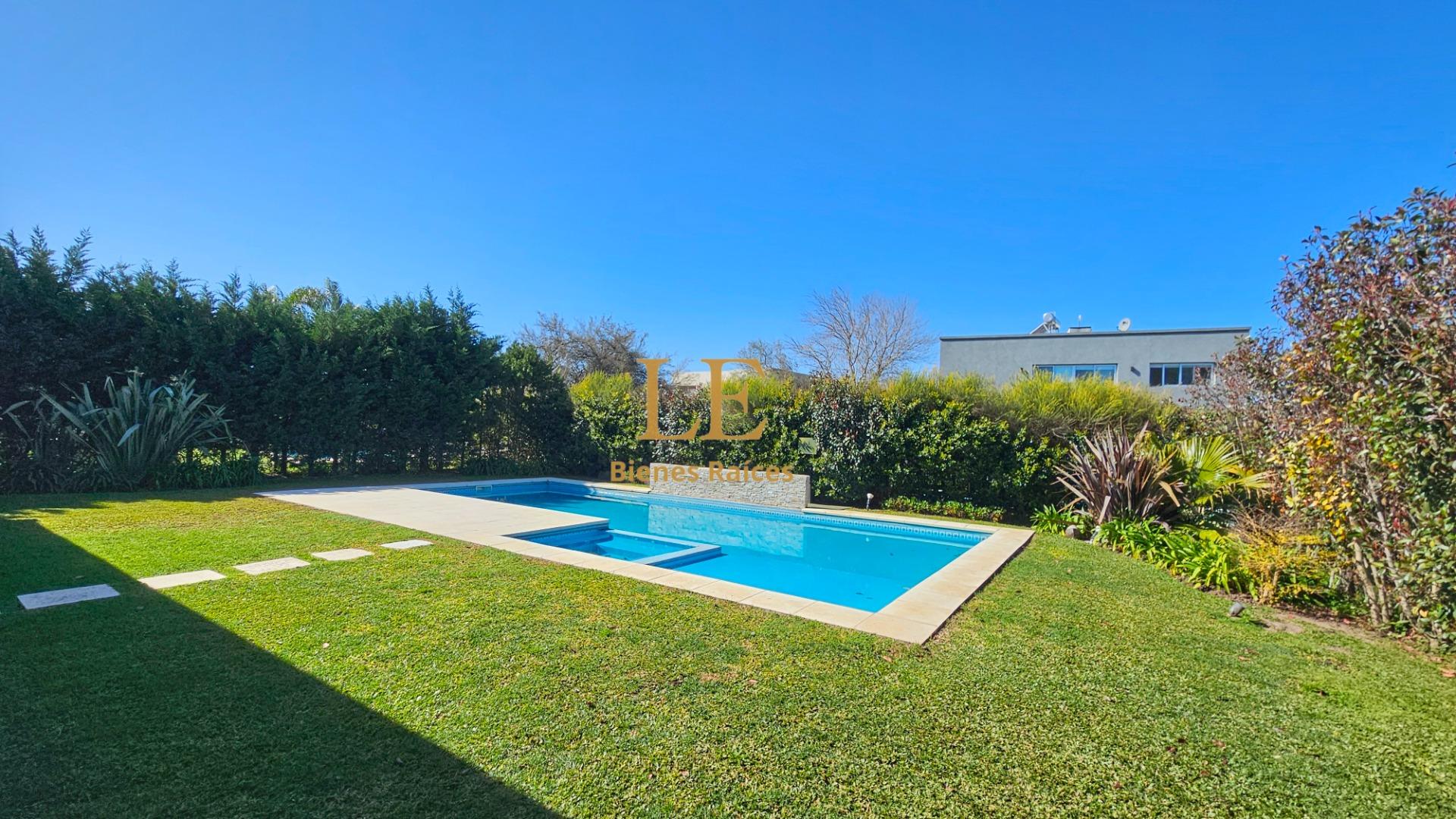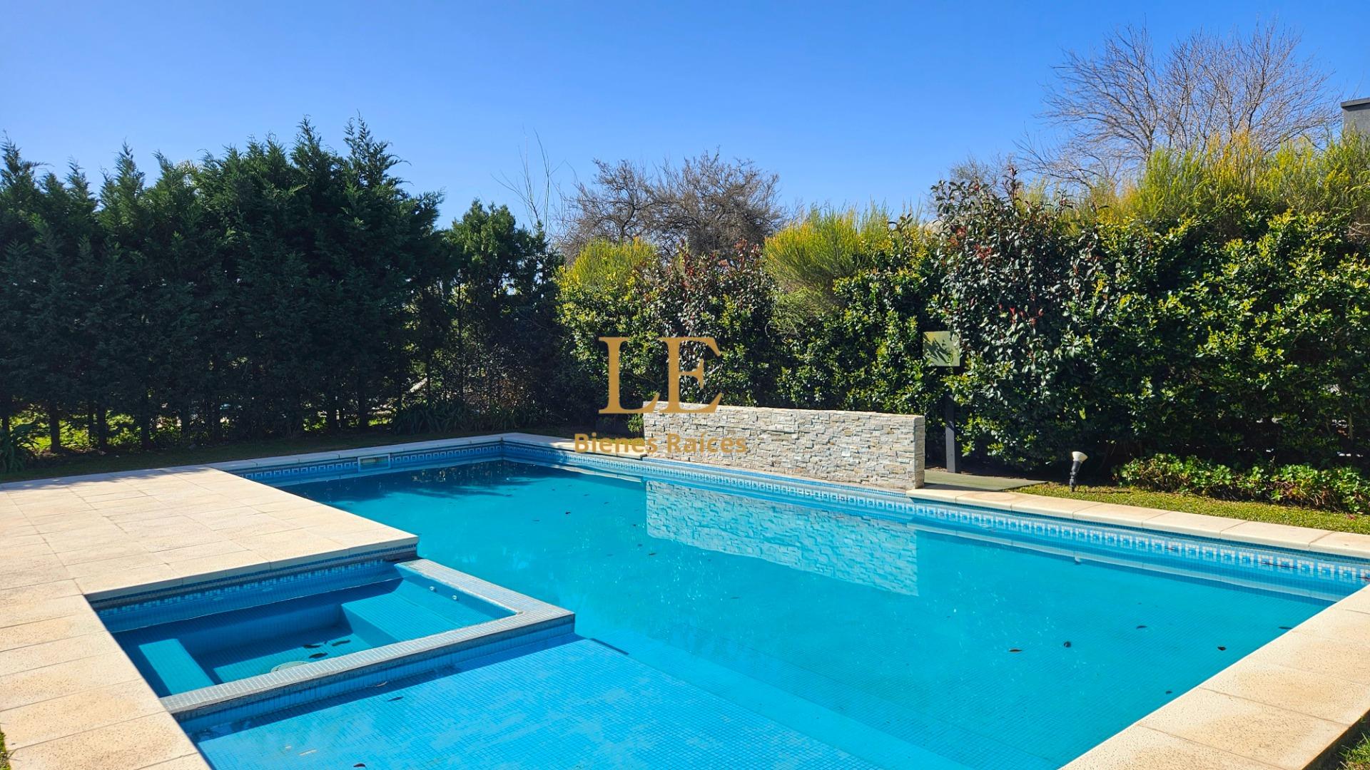 En el exterior se destaca una espectacular piscina de gran tamaño con jacuzzi y playa húmeda, rodeada de un jardín completamente parquizado y con riego automático. La galería techada ofrece un espacio ideal para disfrutar de un living exterior y un cómodo comedor al aire libre. Además, posee cochera cubierta para dos autos y la pileta se encuentra climatizada mediante sistema solar.