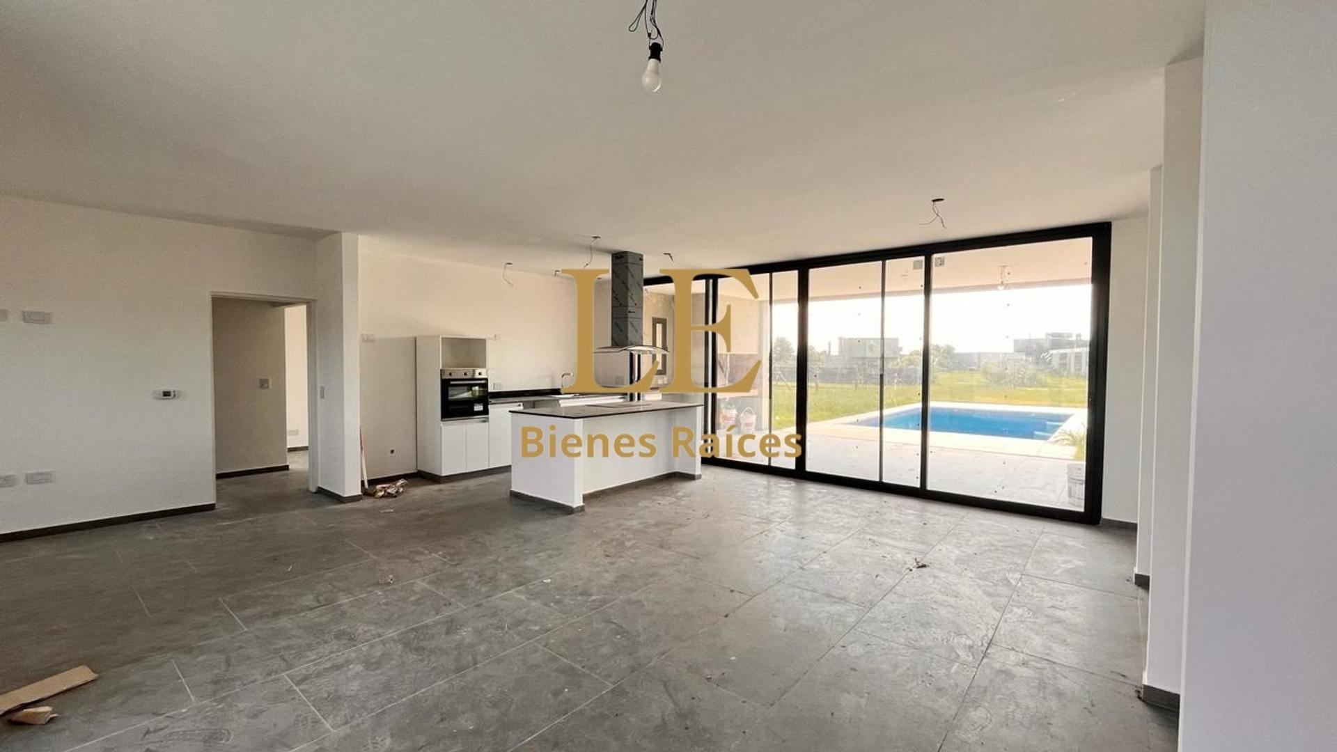 La casa es toda en una planta y la cual tiene un hermoso living comedor con salida a la galería, cocina con isla integrada, dependencia de servicio, lavadero, 3 dormitorios el principal en suite con vestidor y los otros dos con baño compartimentado.